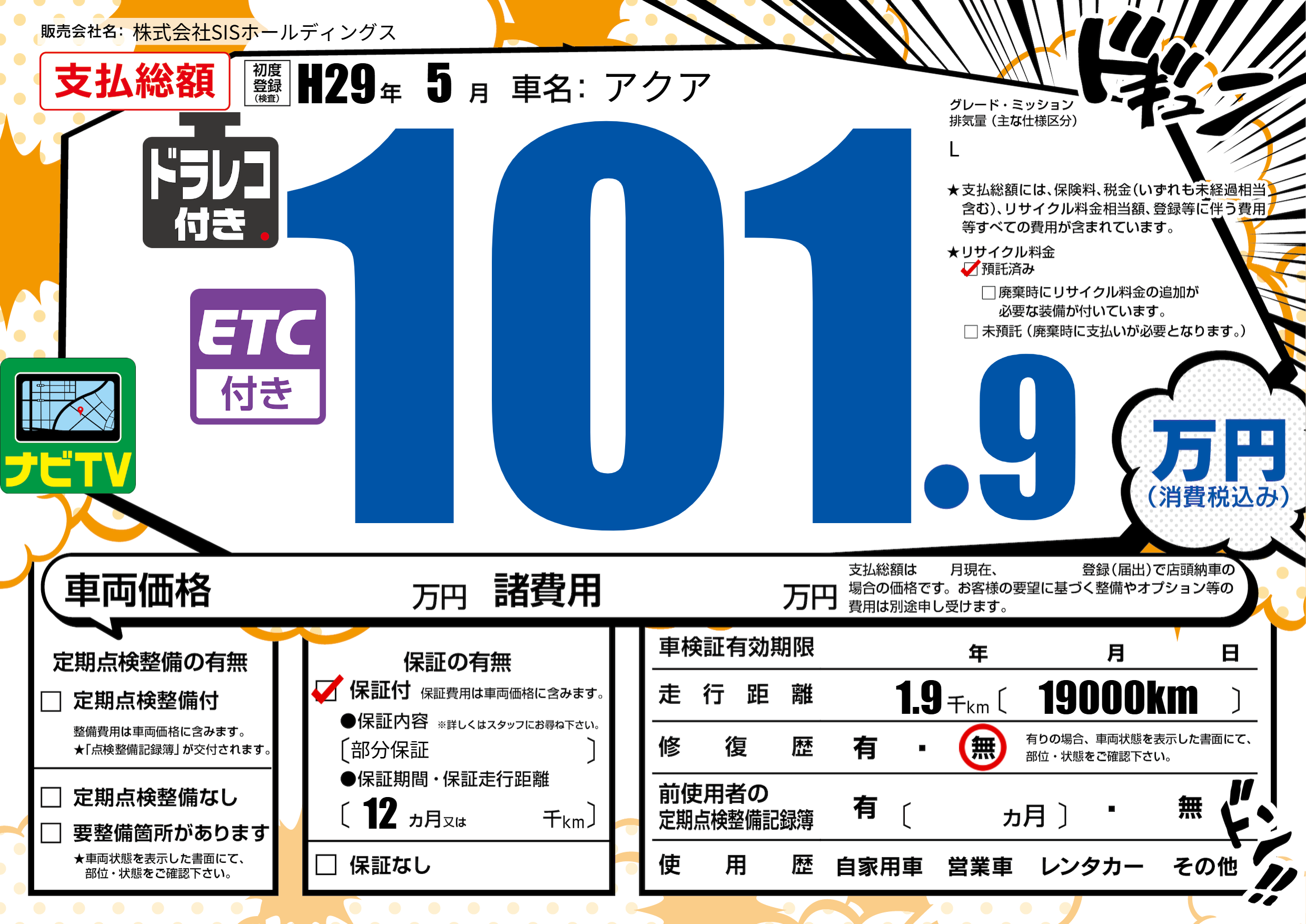 保証付き 保証内容(部分保証) 12ヶ月または()千kmまで |