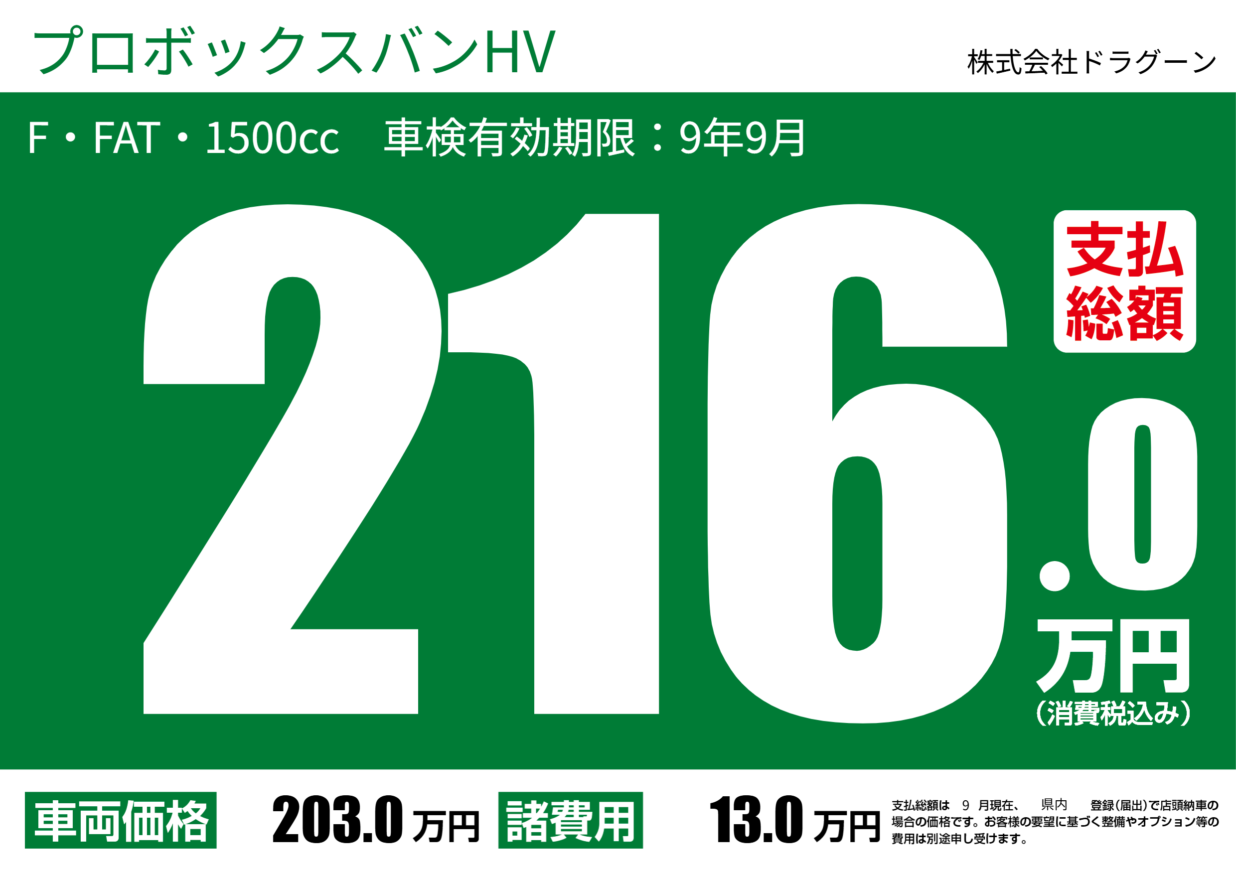 | 車名 | プロボックスバンHV | グレード ミッション 排気量 |
