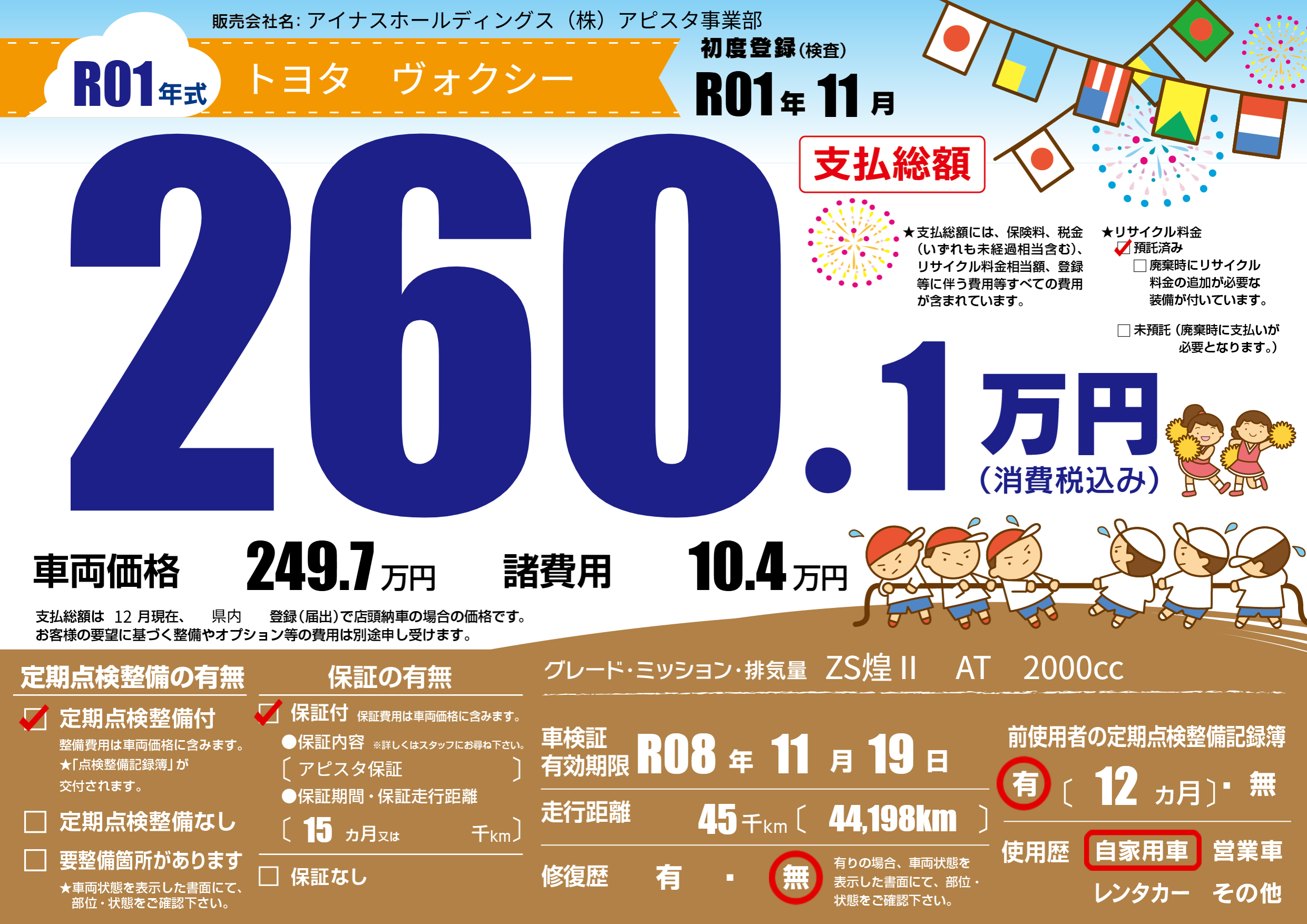 | 車名 | トヨタ ヴォクシー | グレード ミッション 排気量 |
