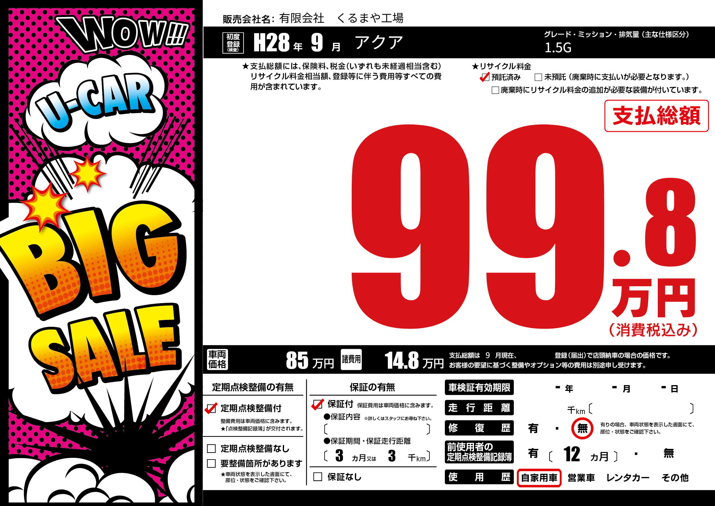 | 走行キロ | - | 初年度登録 | H28年9月 |