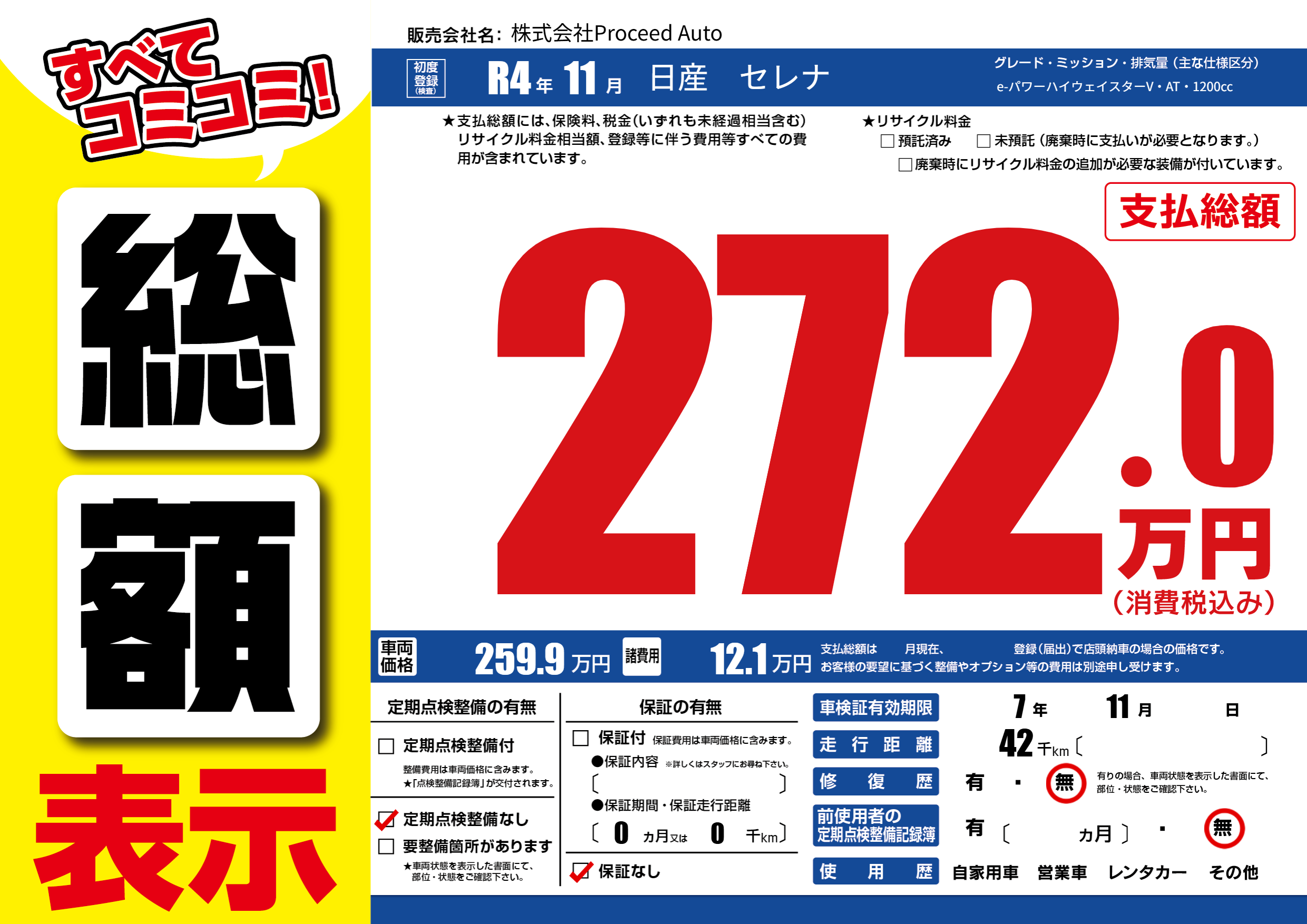 | 定期点検整備 | 定期点検整備なし | ||