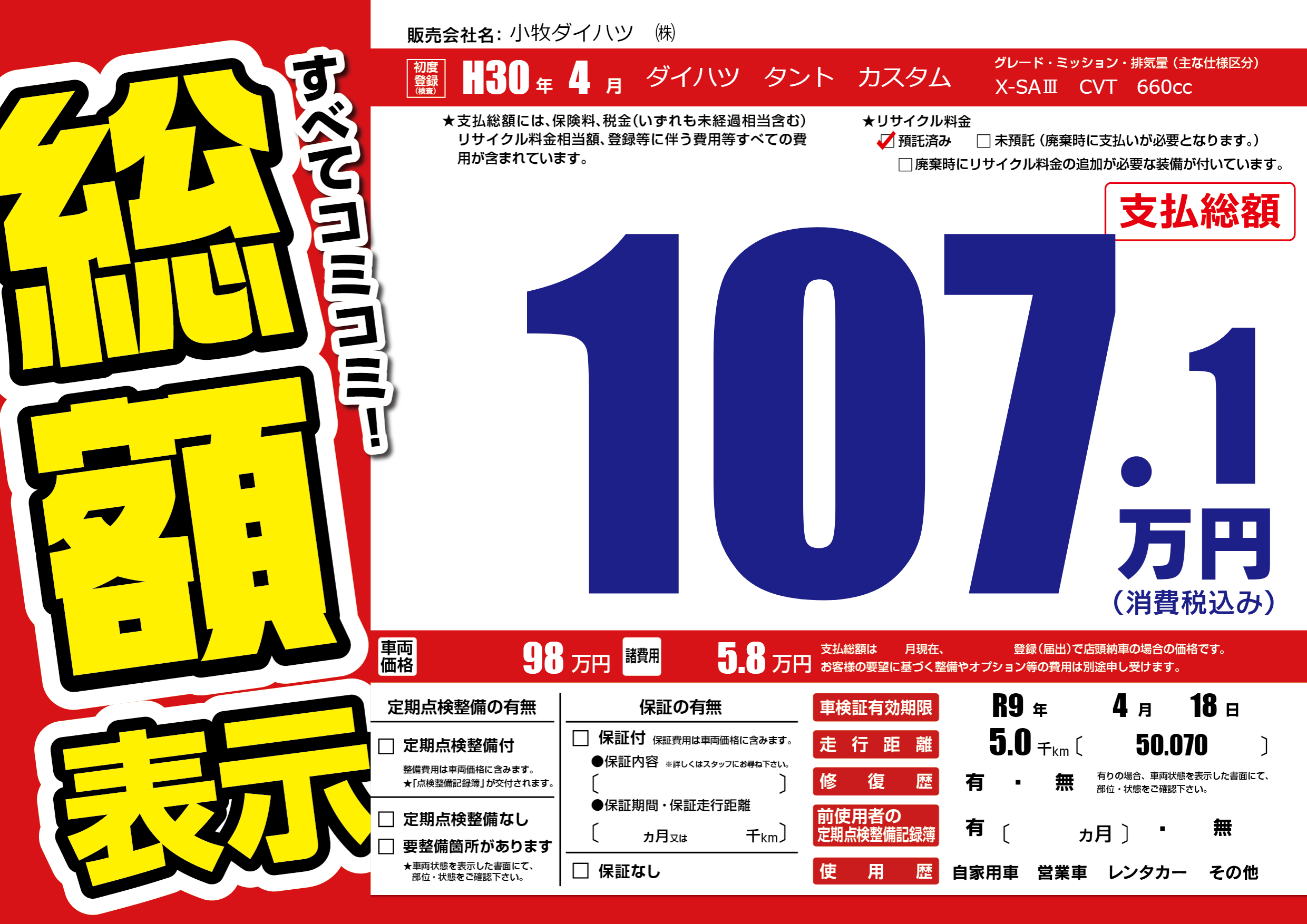 なし | 車検制限 | R9年4月18月 |