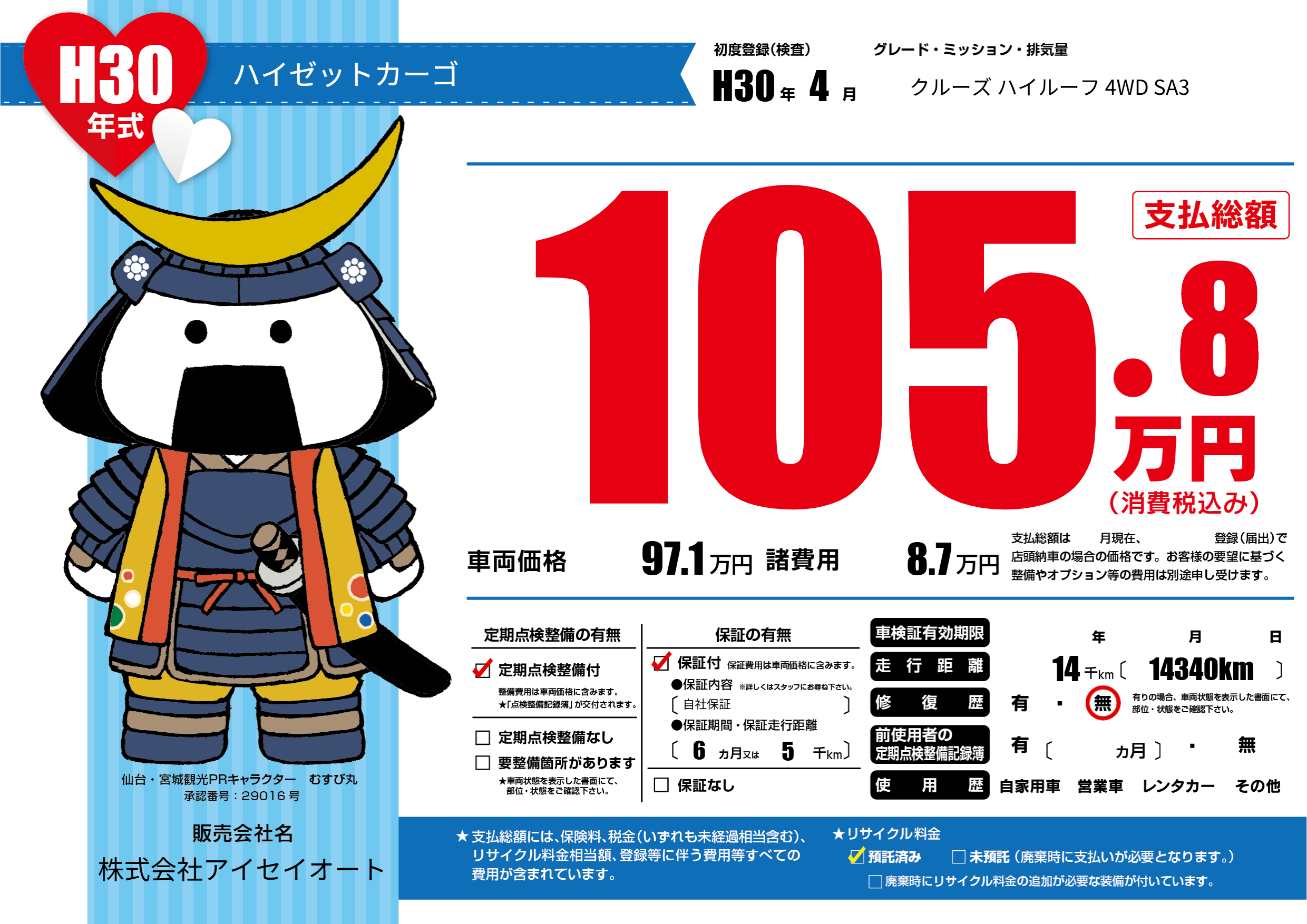 | 車名 | ハイゼットカーゴ | グレード ミッション 排気量 |