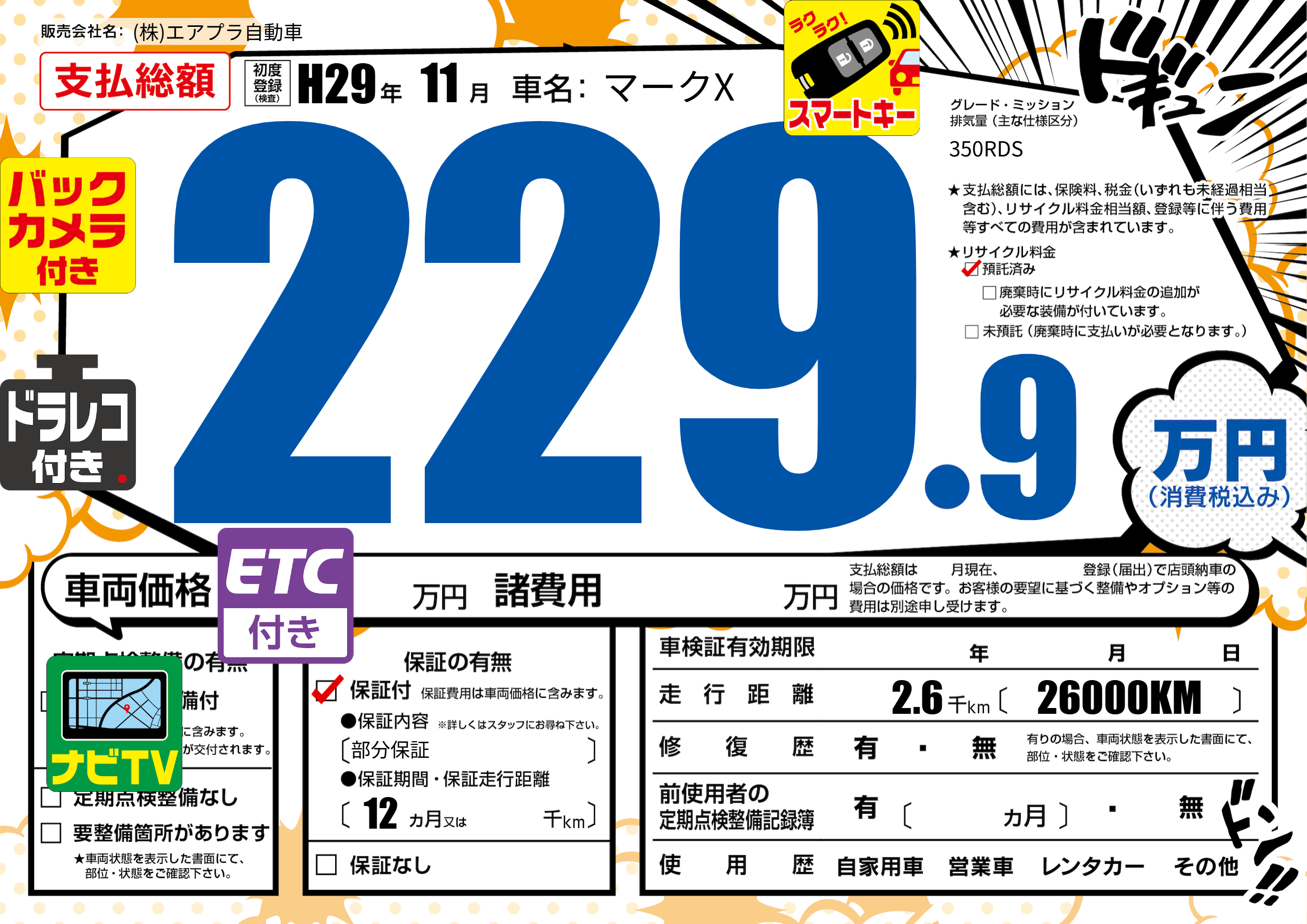| 走行キロ | 0.2万km | 初年度登録 | H29年11月 |