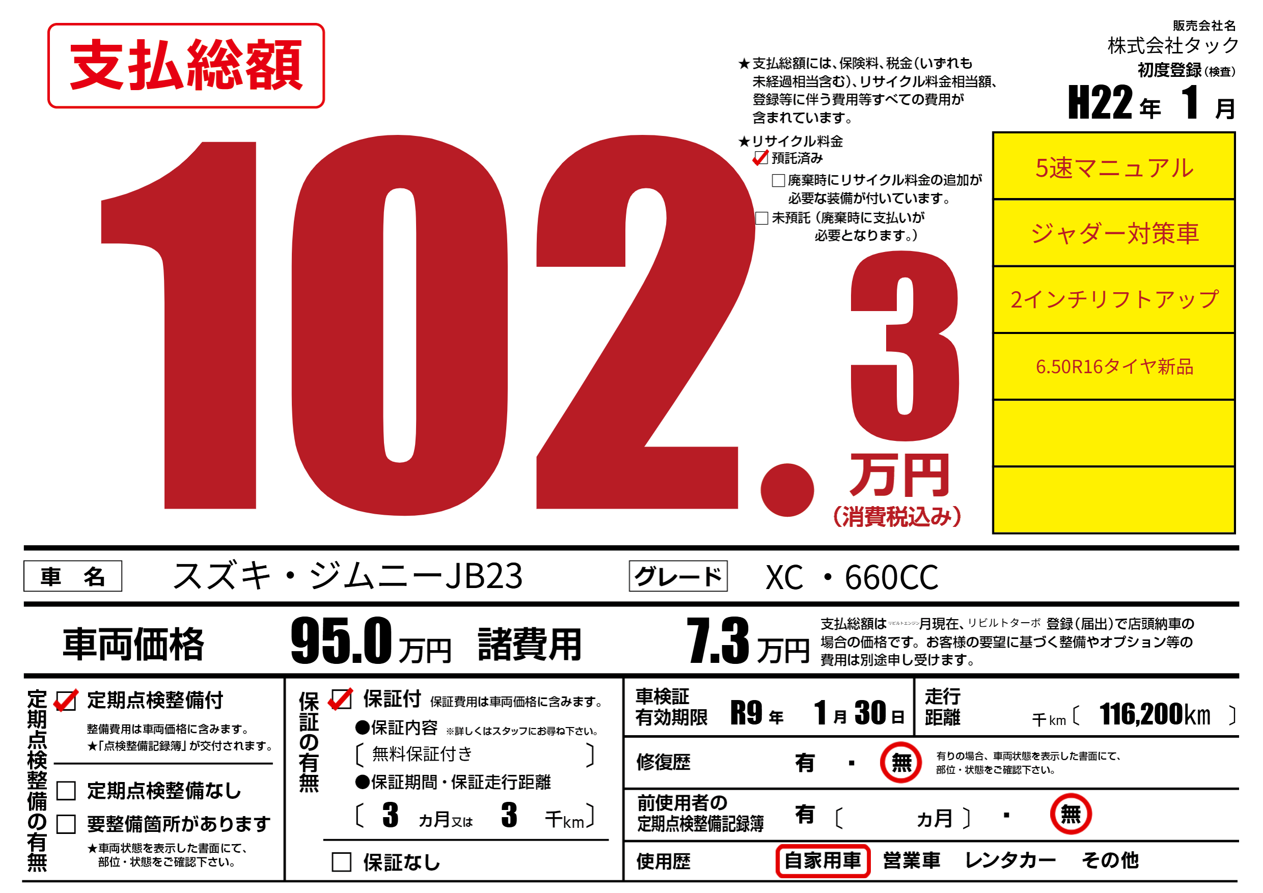 なし | 車検制限 | R9年1月30月 |