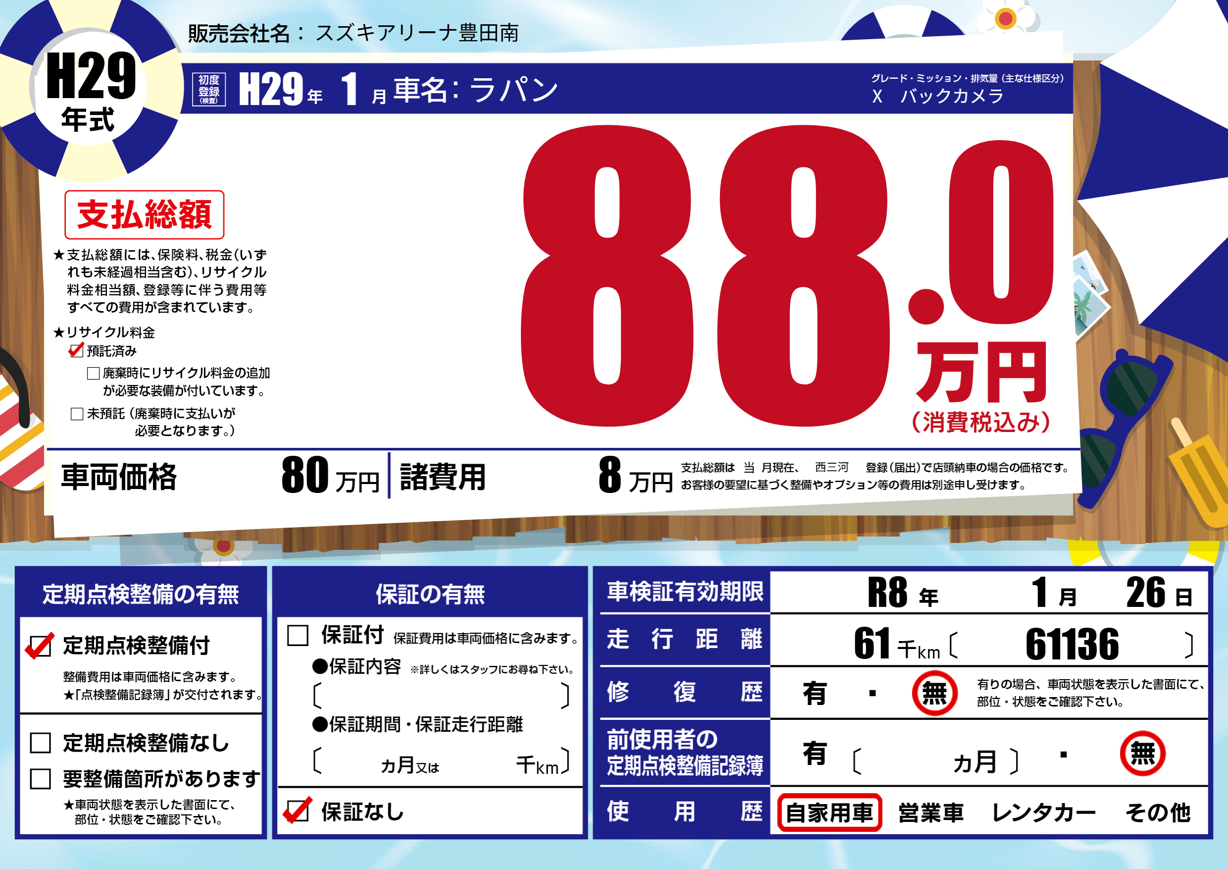| 走行キロ | 6.1万km | 初年度登録 | H29年1月 |
