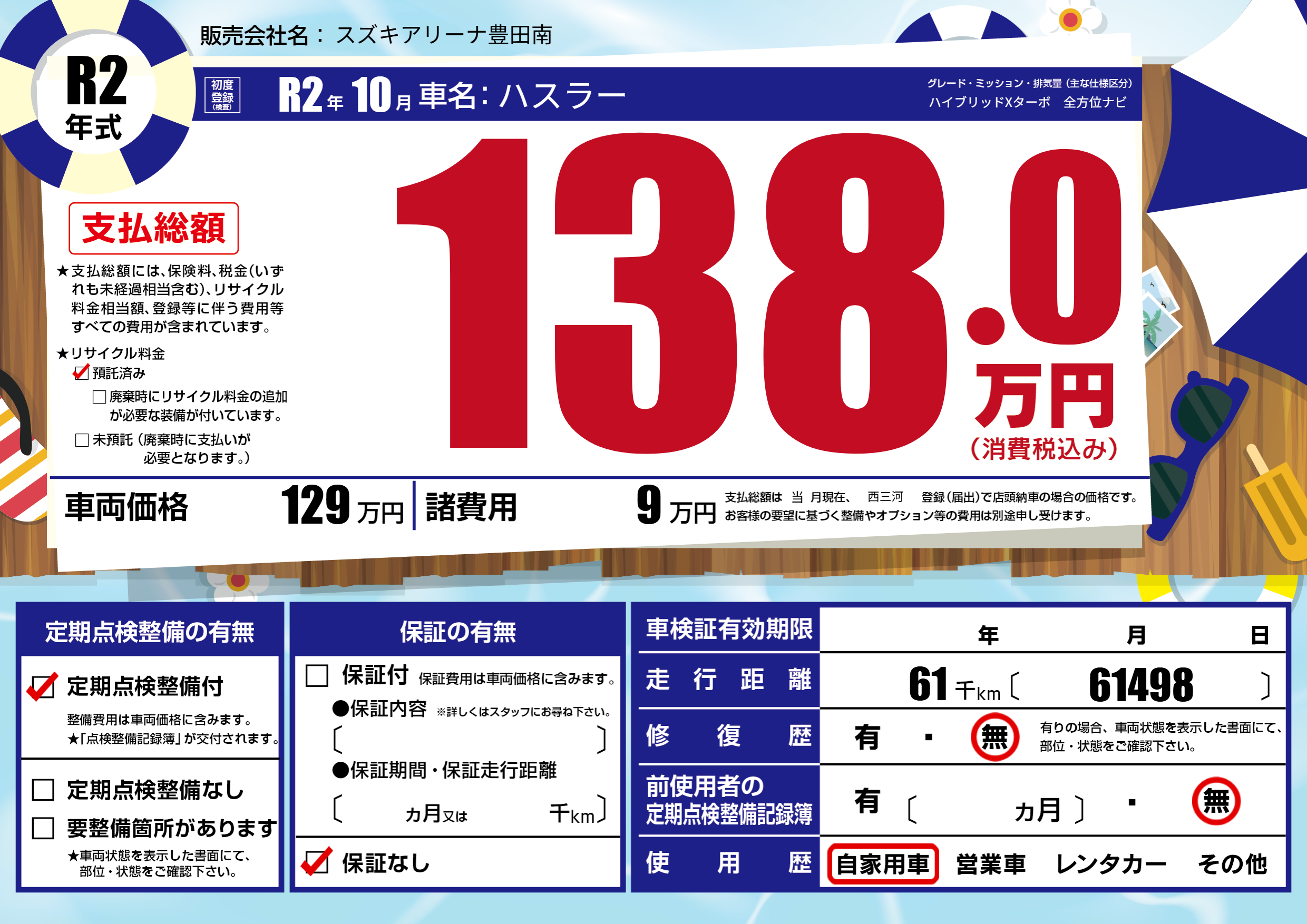 | 走行キロ | 6.1万km | 初年度登録 | R2年10月 |