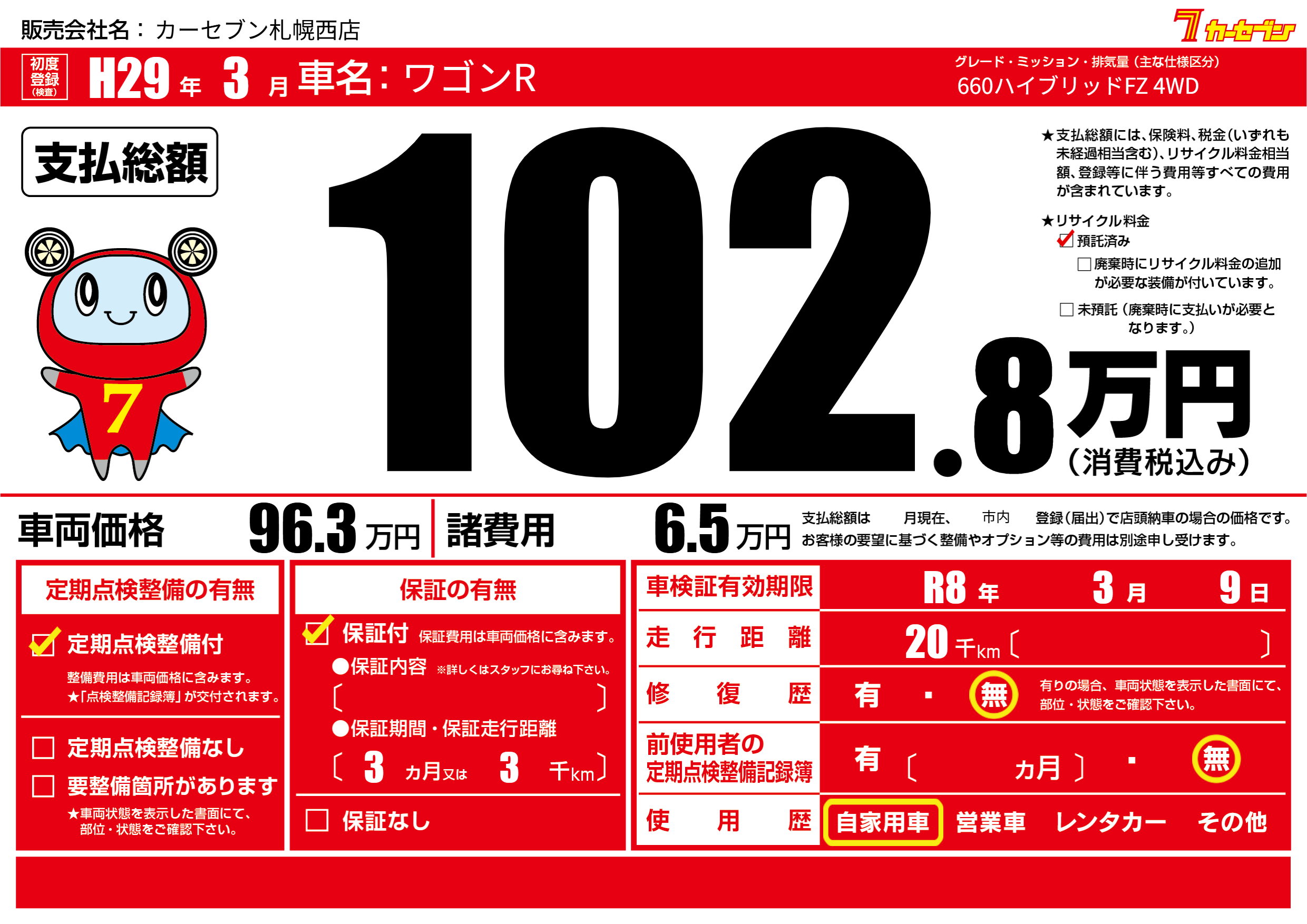なし | 車検制限 | R8年3月9月 |