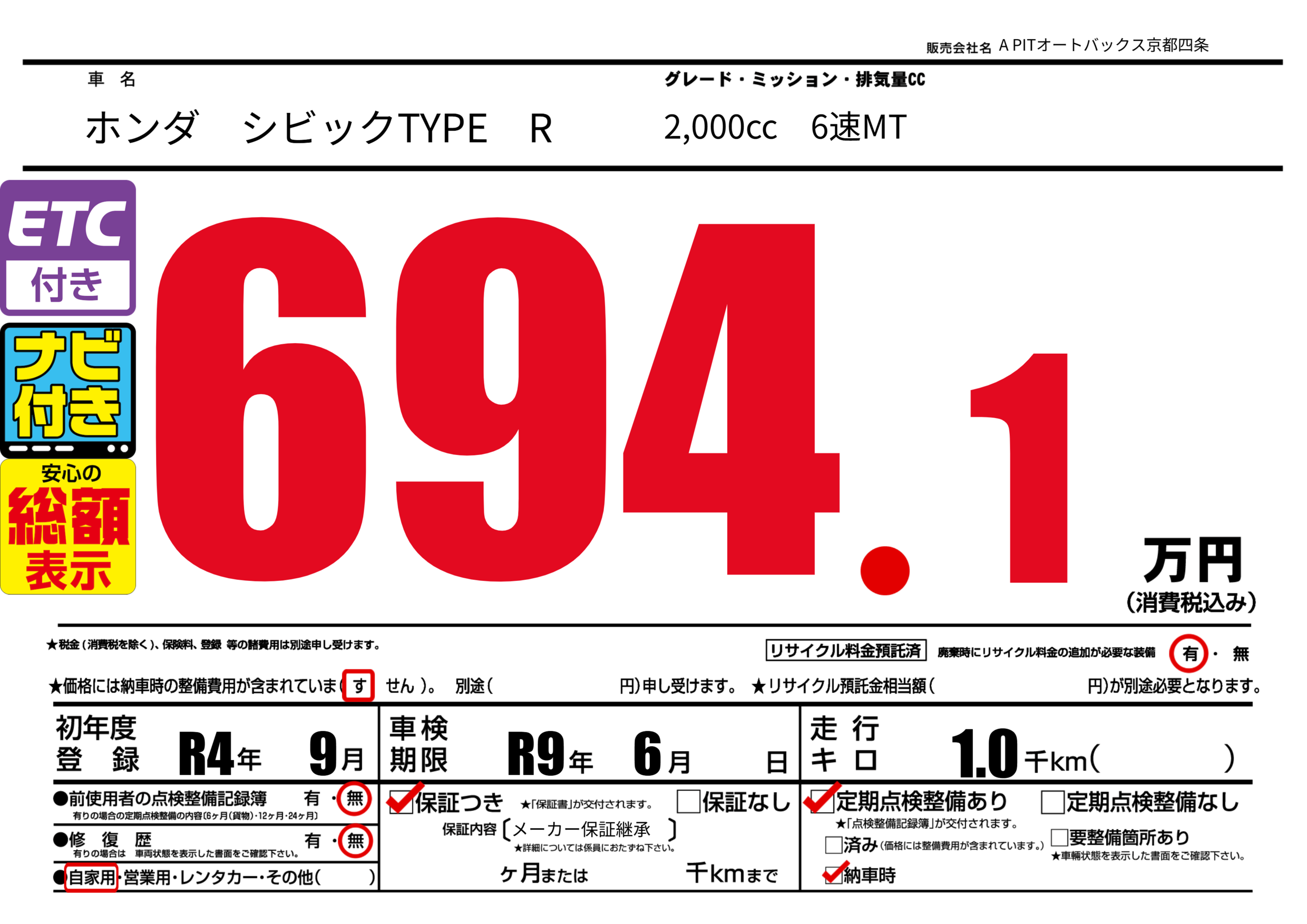 あり | 車検制限 | R9年6月---月 |