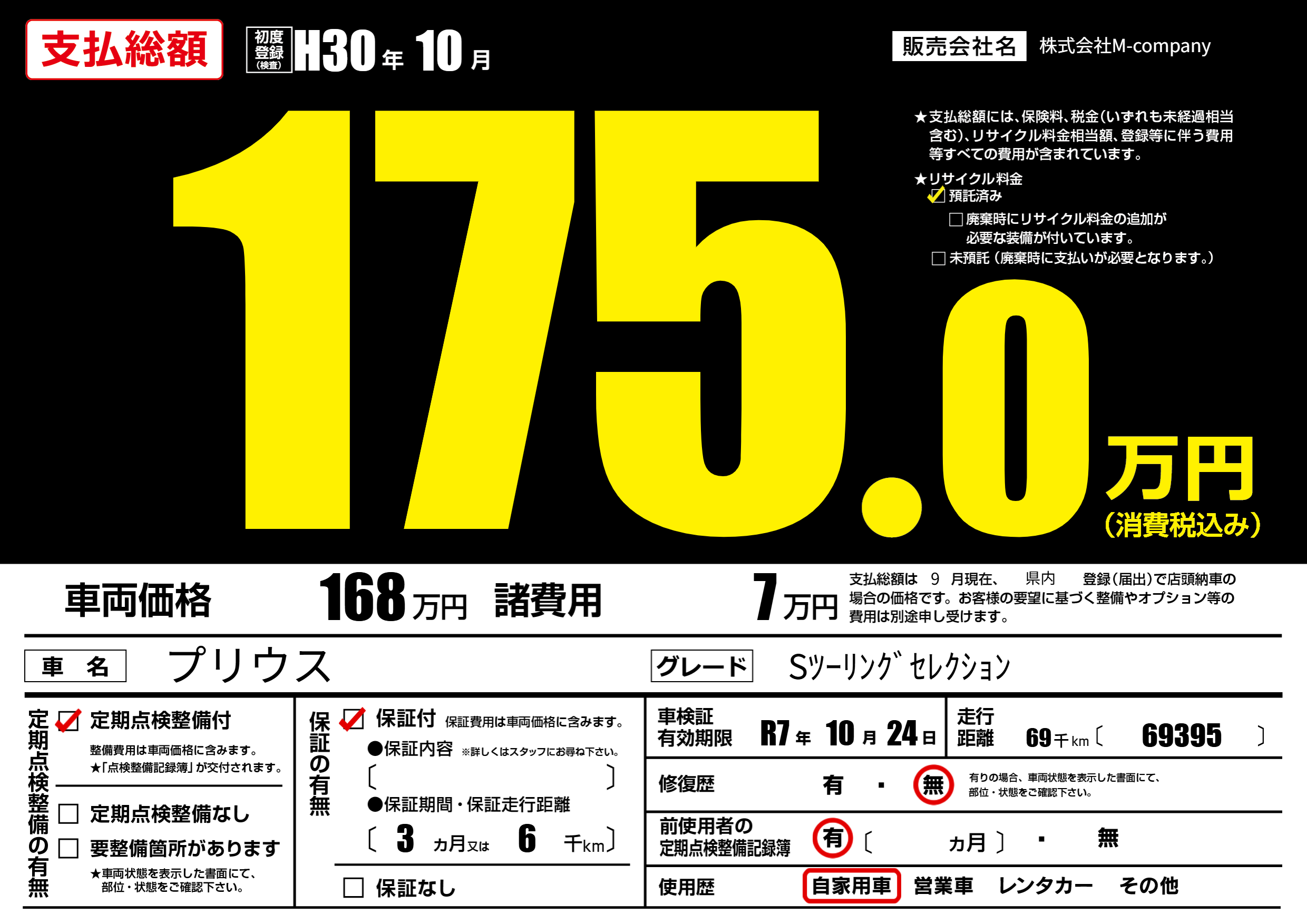 なし | 車検制限 | R7年10月24月 |