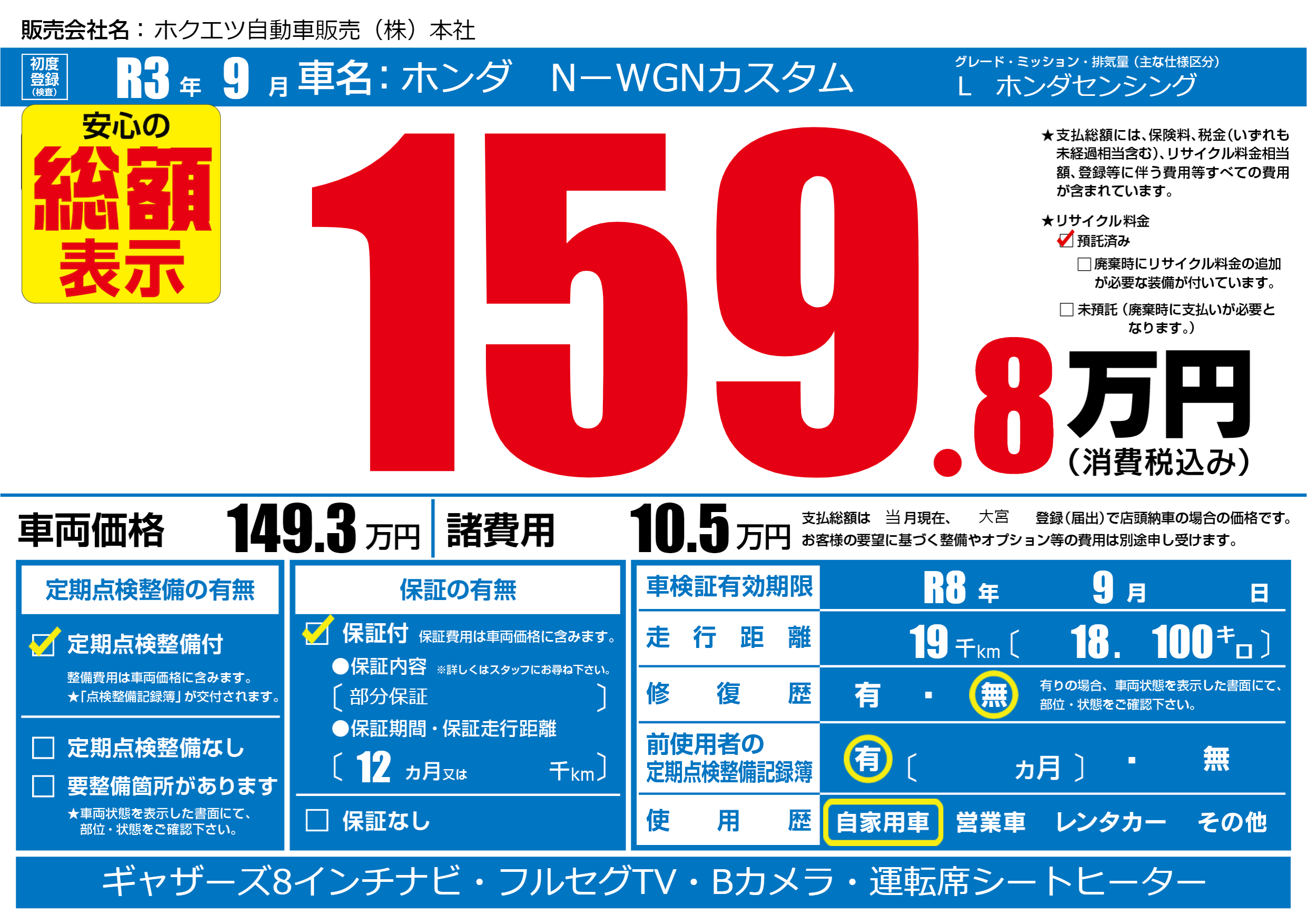 | 走行キロ | 1.9万km | 初年度登録 | R3年9月 |