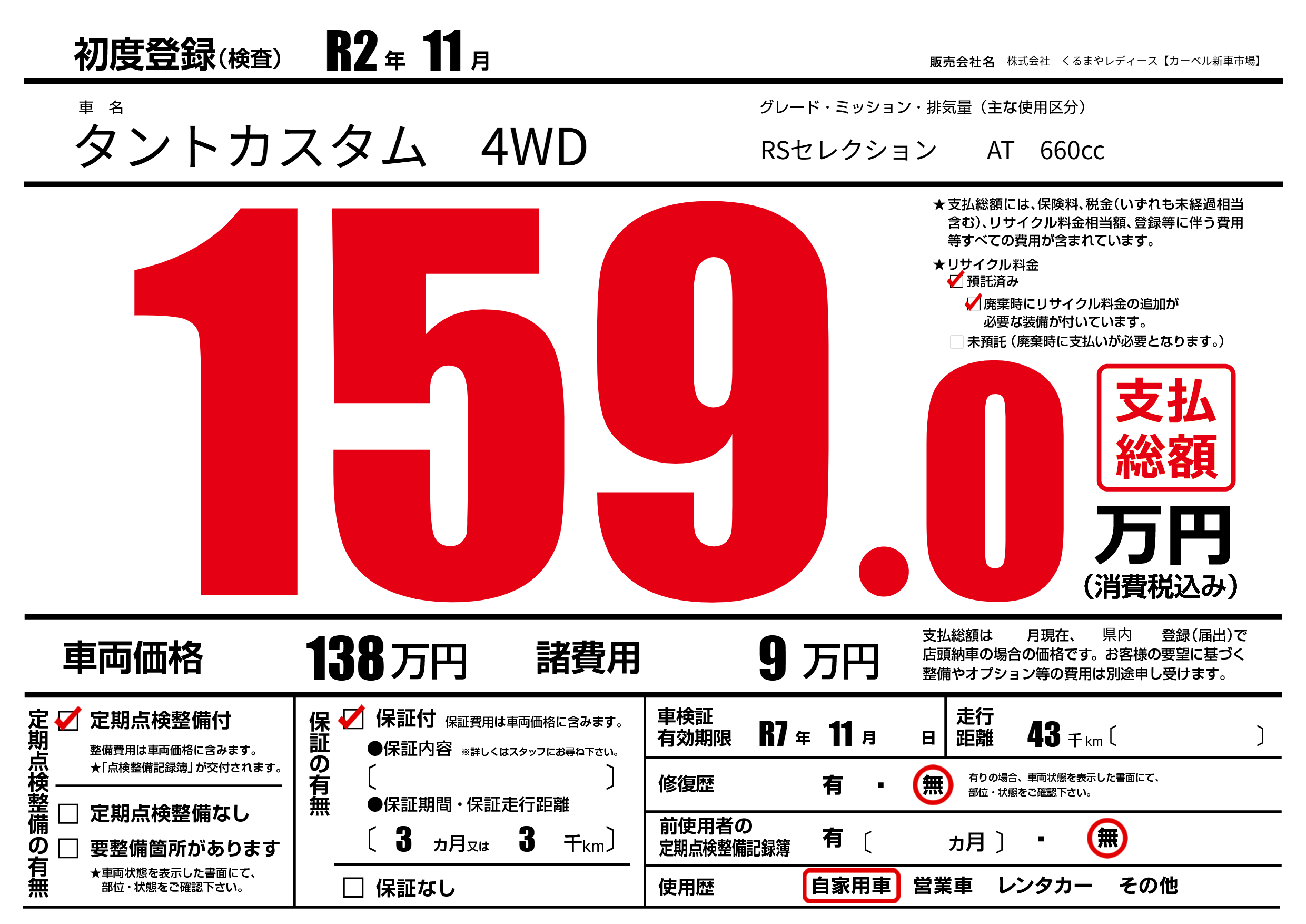 株式会社 くるまやレディース【カーベル新車市場】の展示車