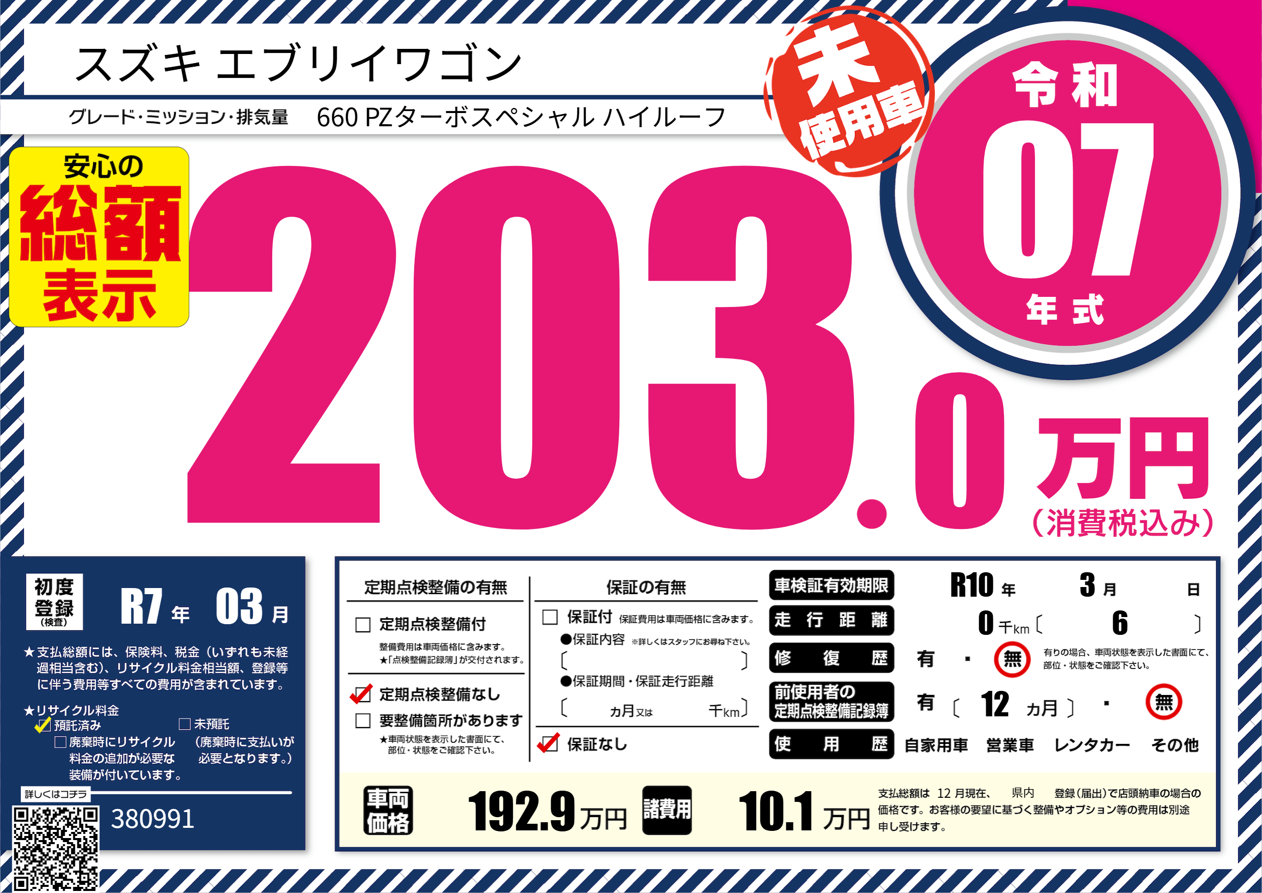 | 車検制限 | R10年 3月 - 日 | ||