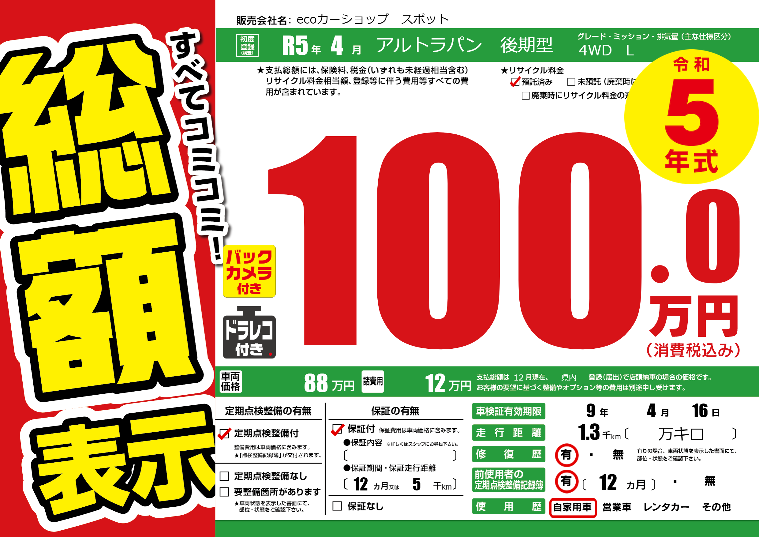 保証付き 保証内容(---) 12ヶ月または(5)千kmまで |