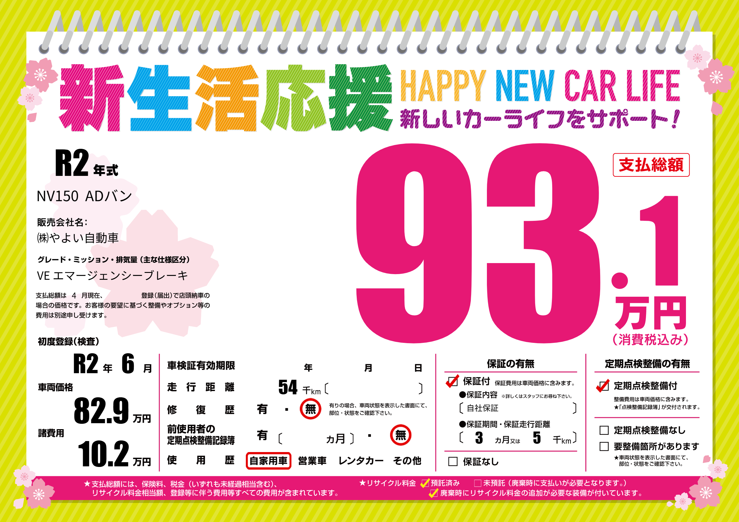 | 車名 | NV150 ADバン | グレード ミッション 排気量 |