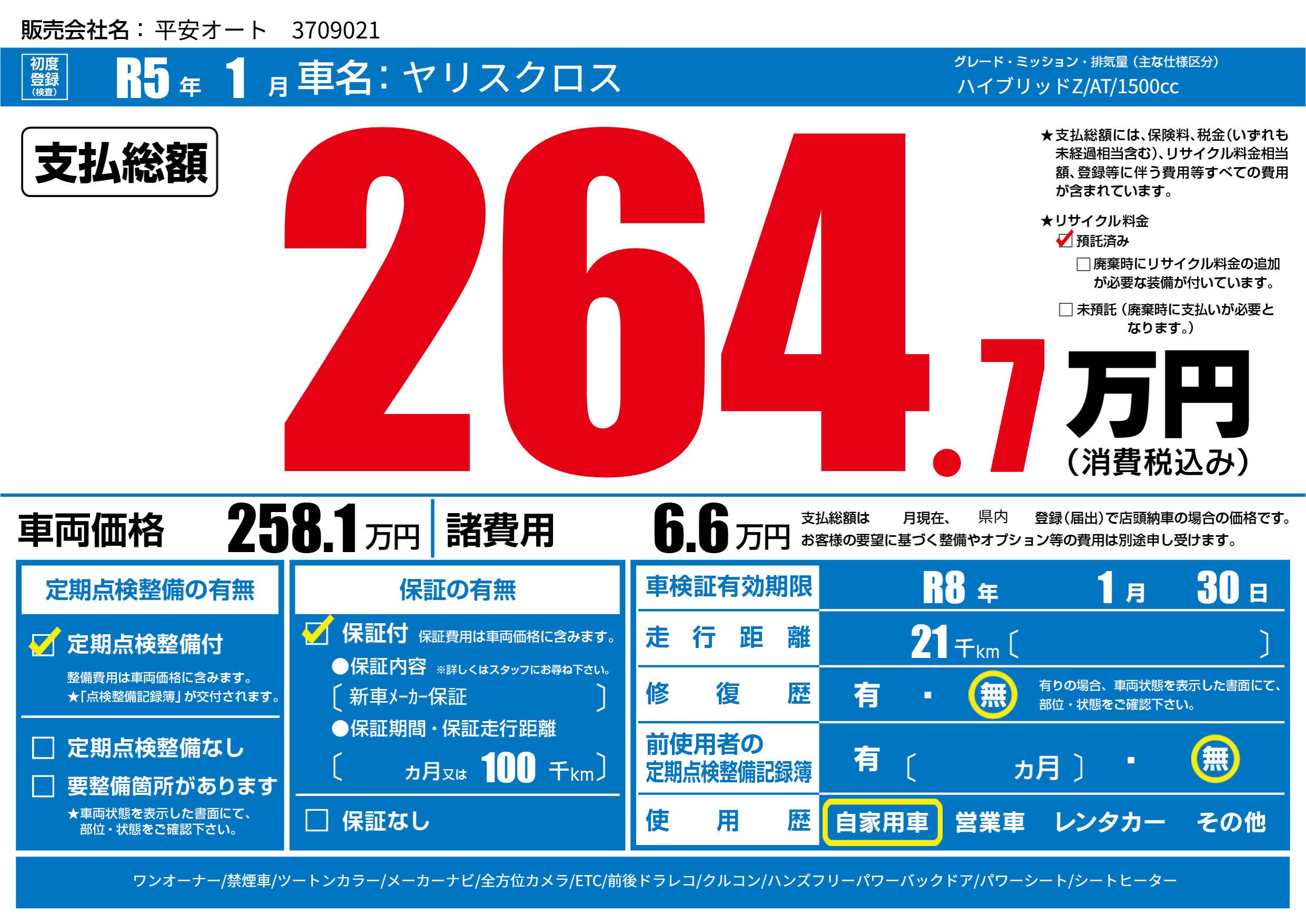 なし | 車検制限 | R8年1月30月 |