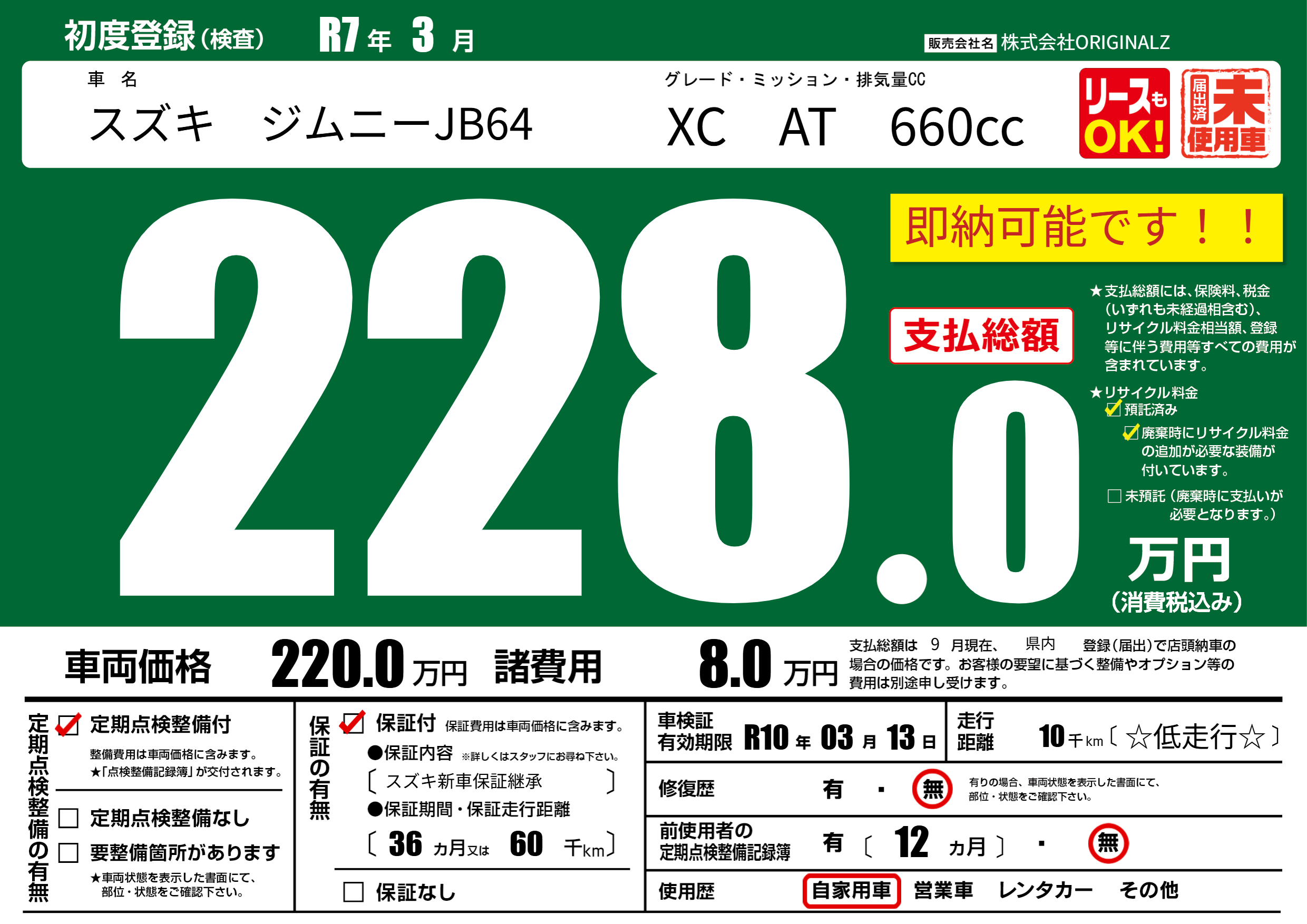 なし | 車検制限 | R10年03月13月 |