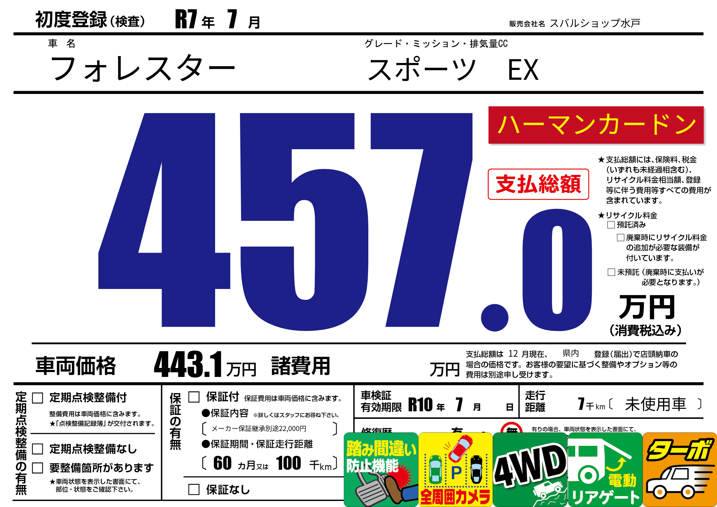 | 車名 | フォレスター | グレード ミッション 排気量 |