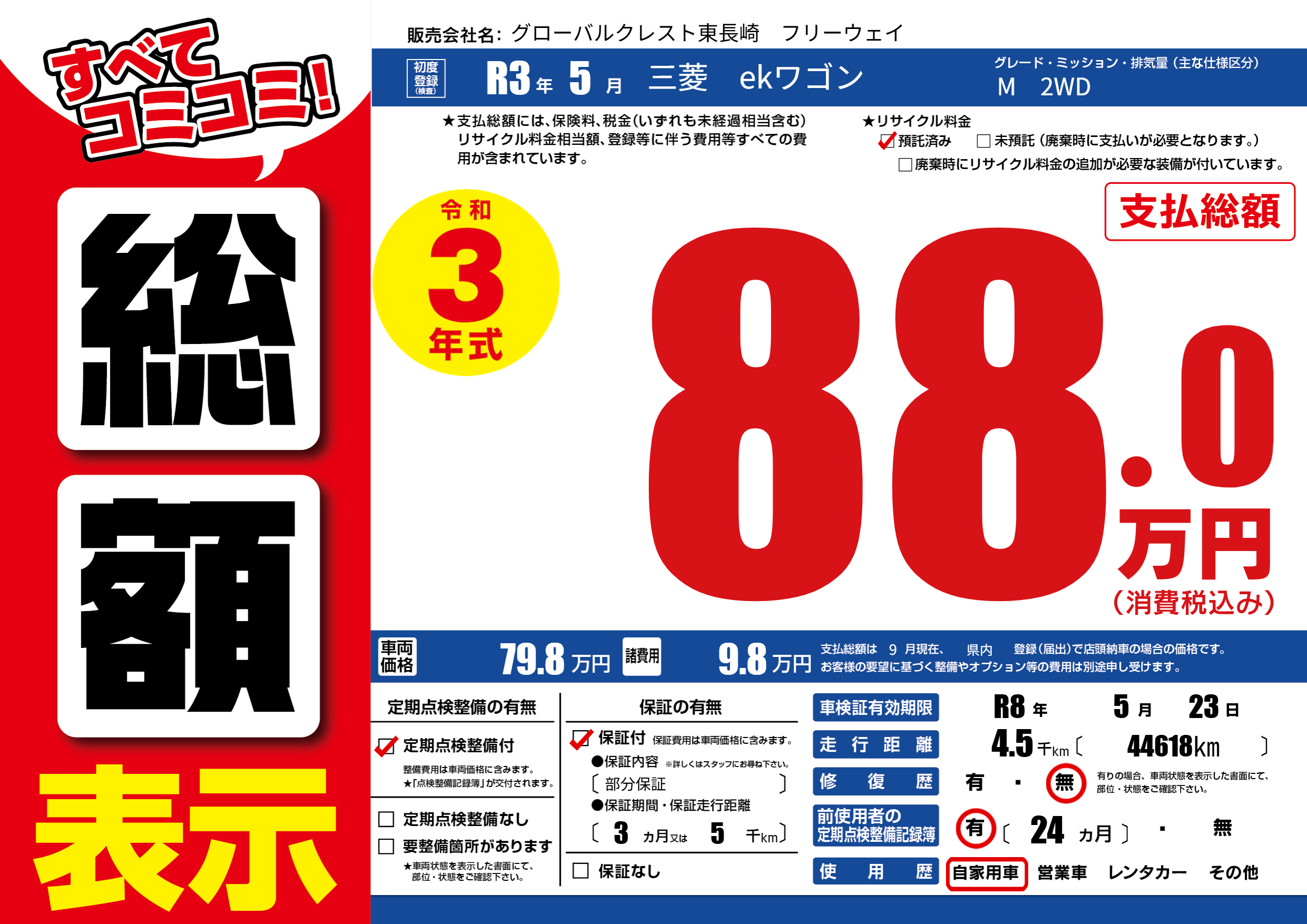 | 車名 | 三菱 ekワゴン | グレード ミッション 排気量 |