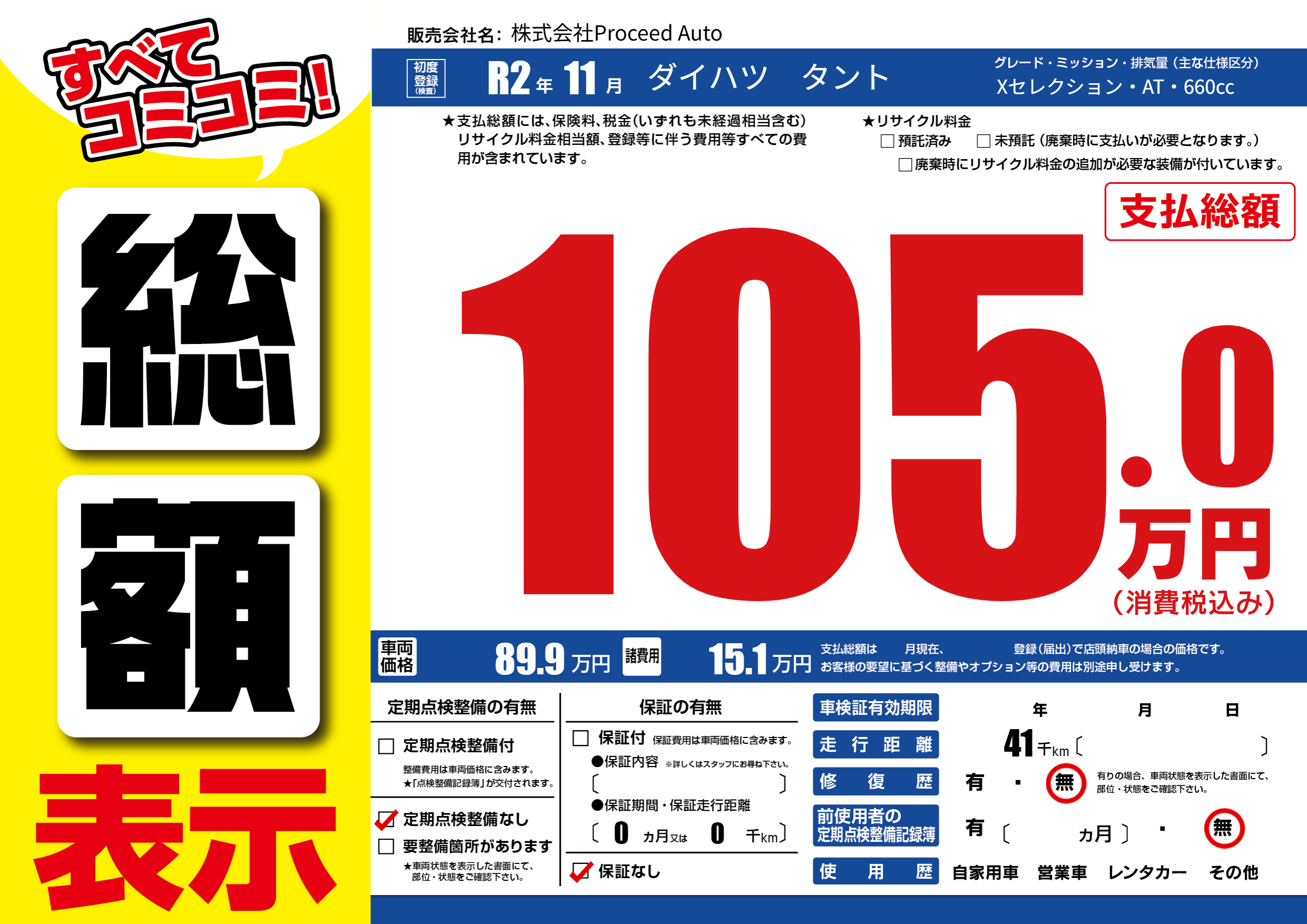 | 定期点検整備 | 定期点検整備なし | ||