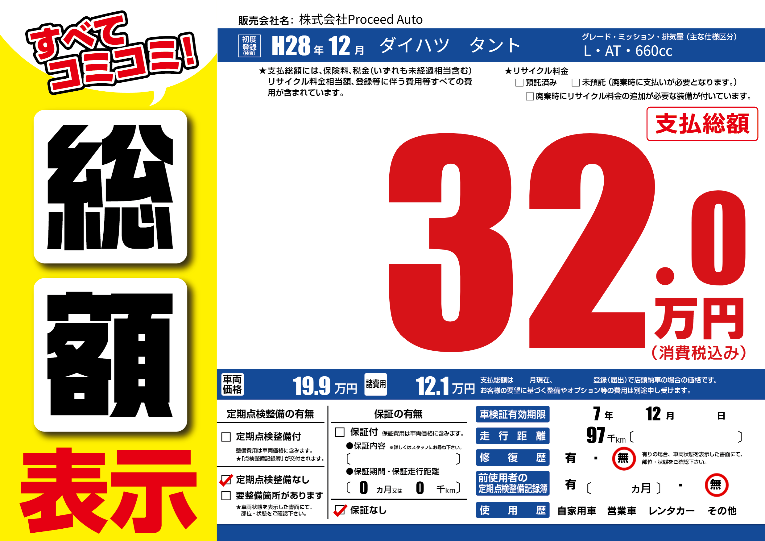 | 定期点検整備 | 定期点検整備なし | ||