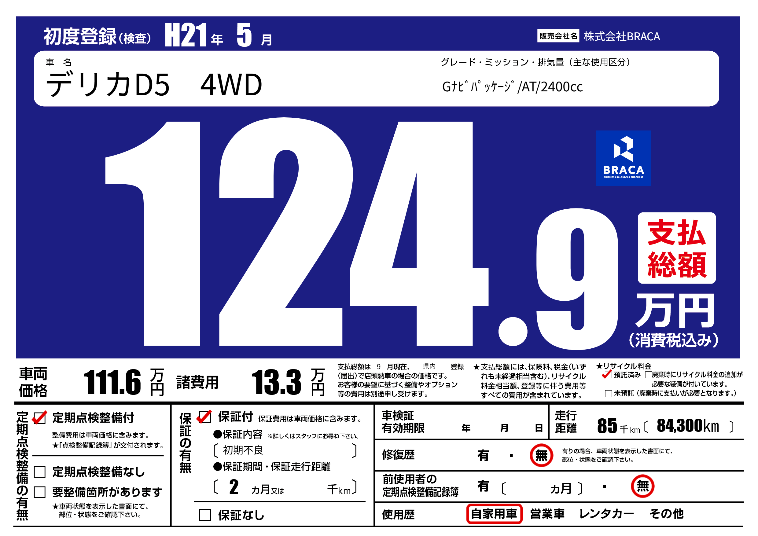 | 定期点検整備 | 定期点検整備あり | ||
