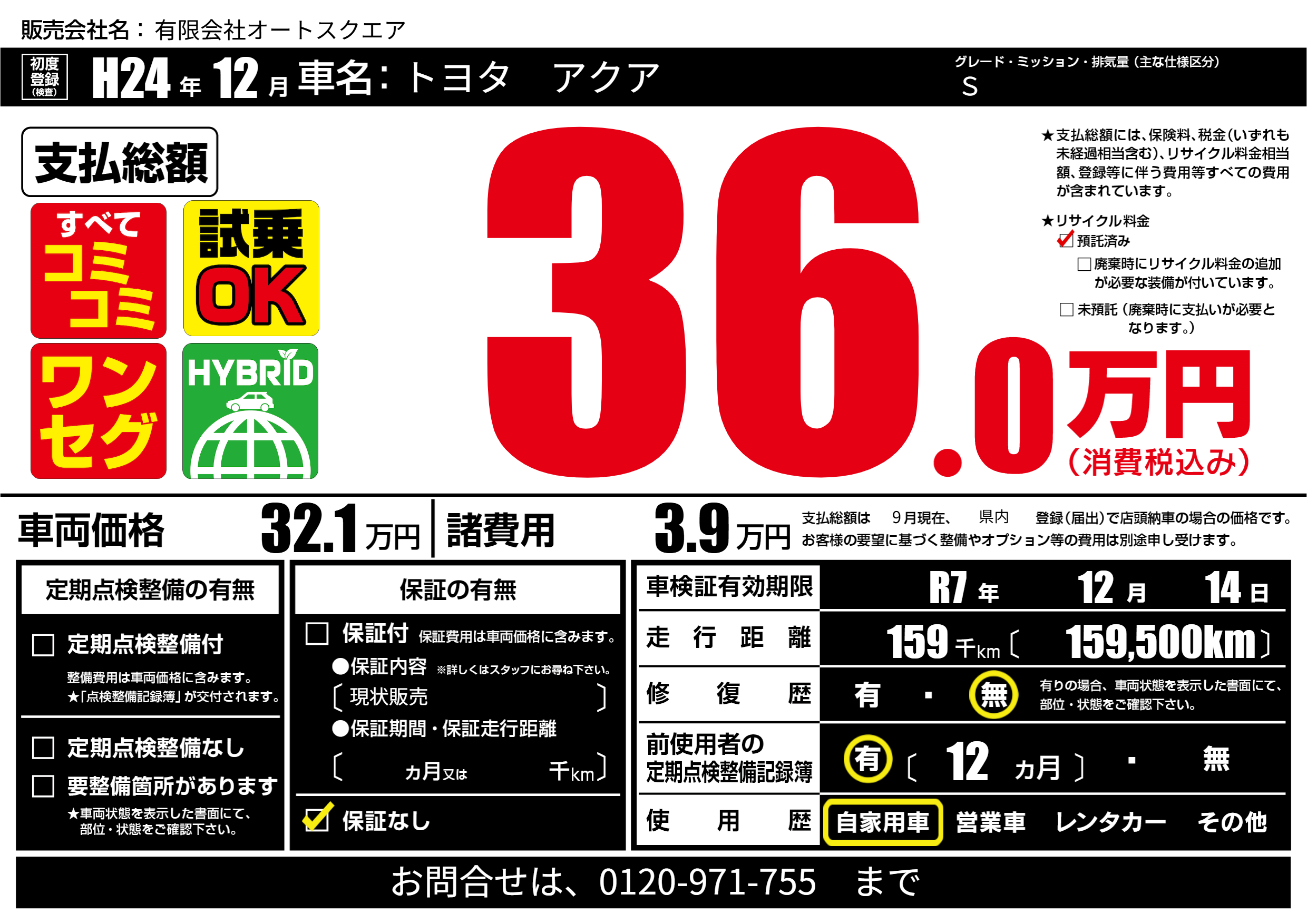 | 車検制限 | R7年 12月 14日 | ||