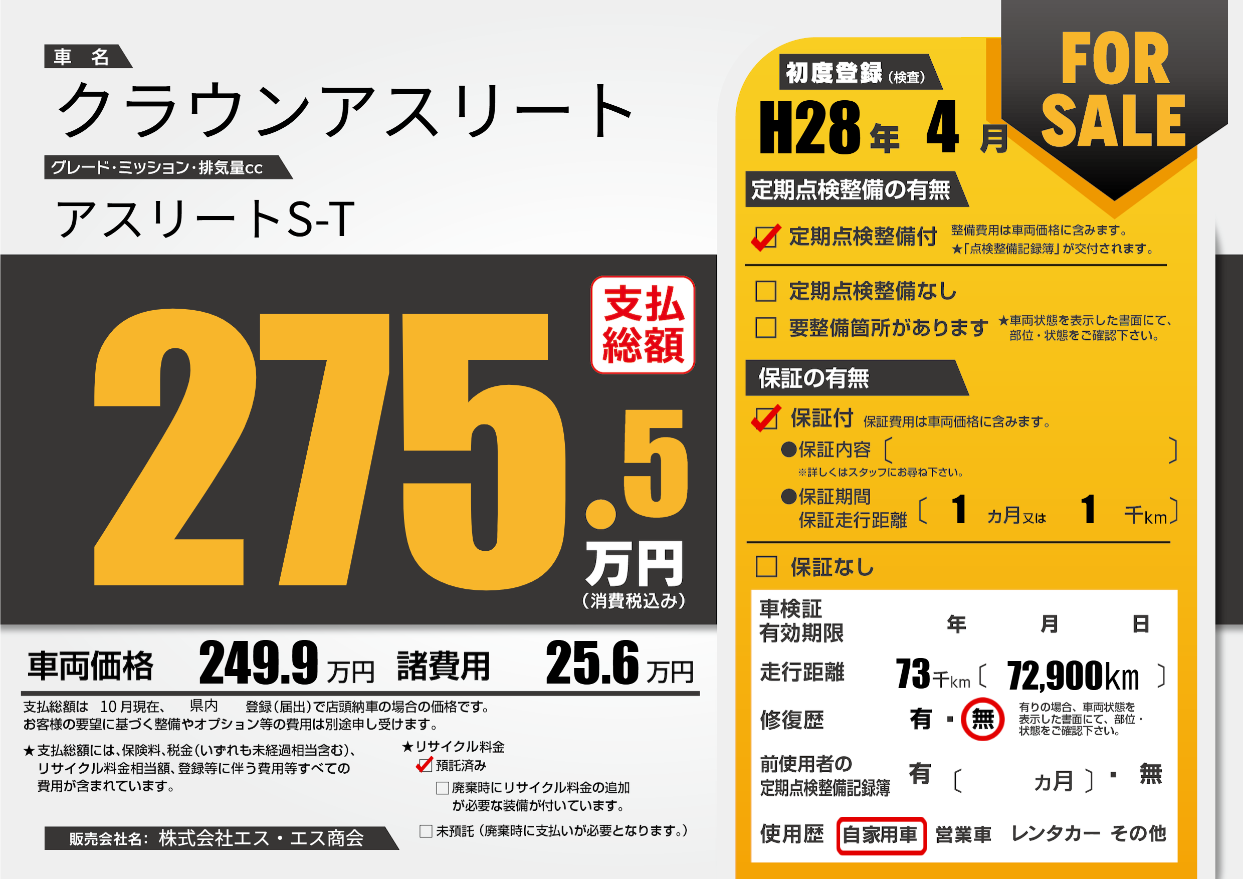 | 車名 | クラウンアスリート | グレード ミッション 排気量 |