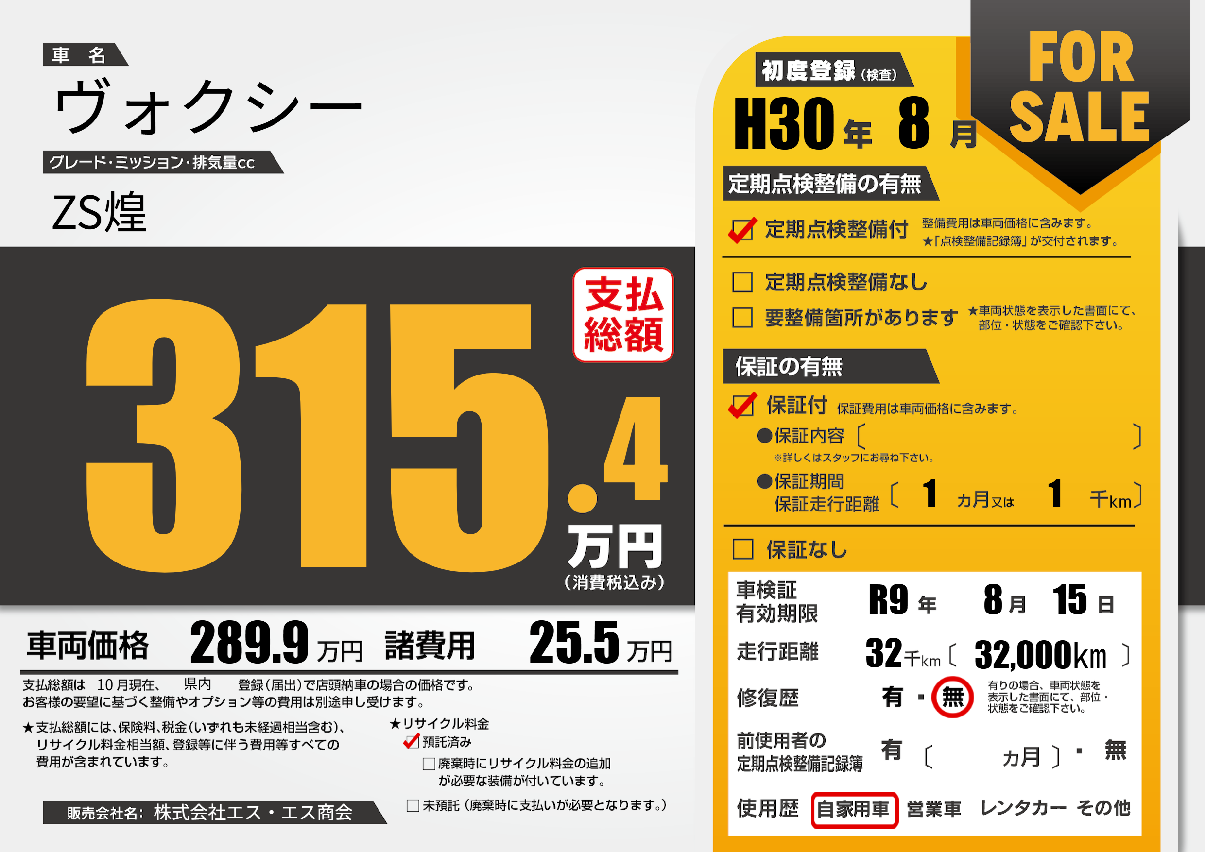 | 走行キロ | 3.2万km | 初年度登録 | H30年8月 |