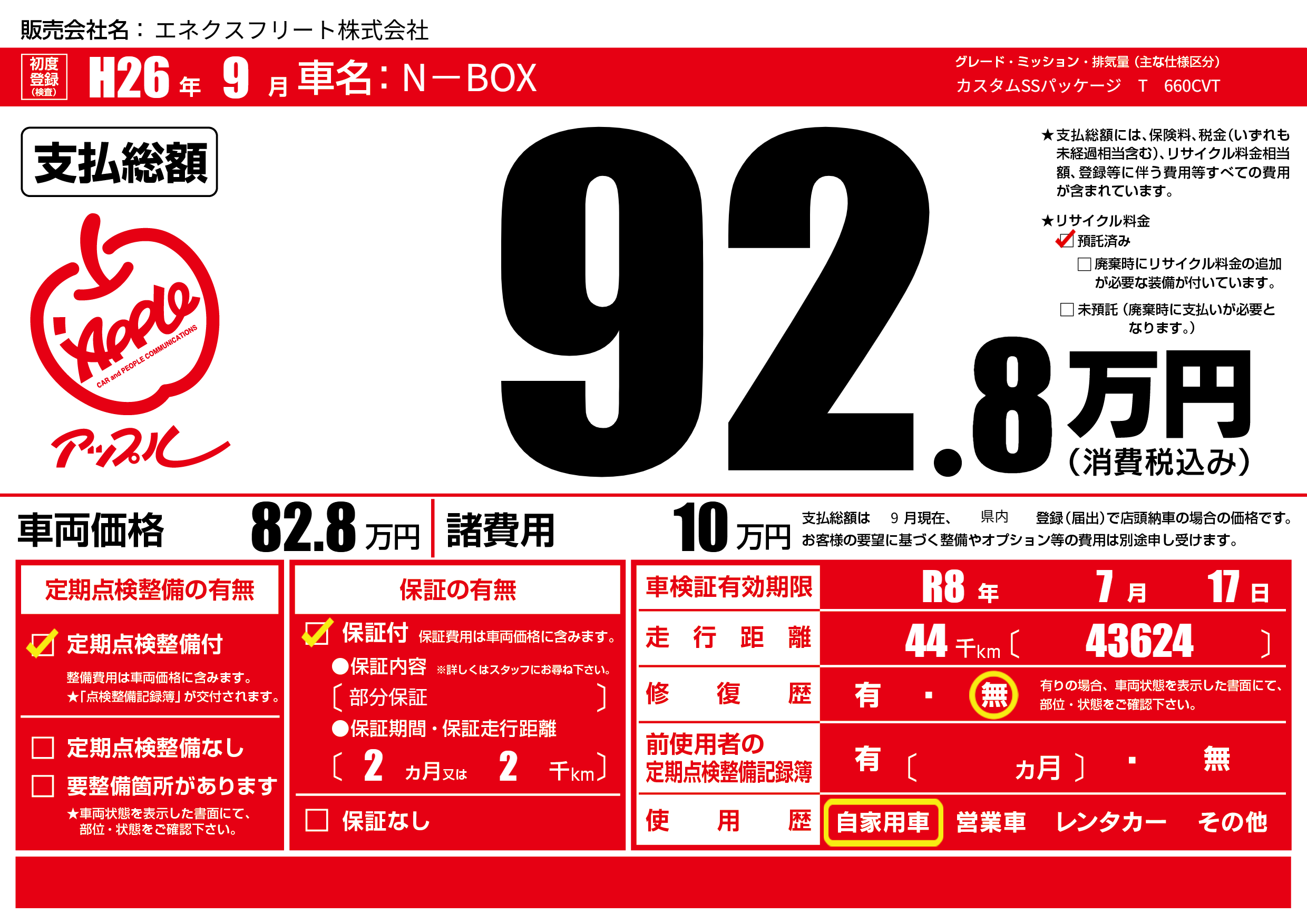 | 車検制限 | R8年 7月 17日 | ||