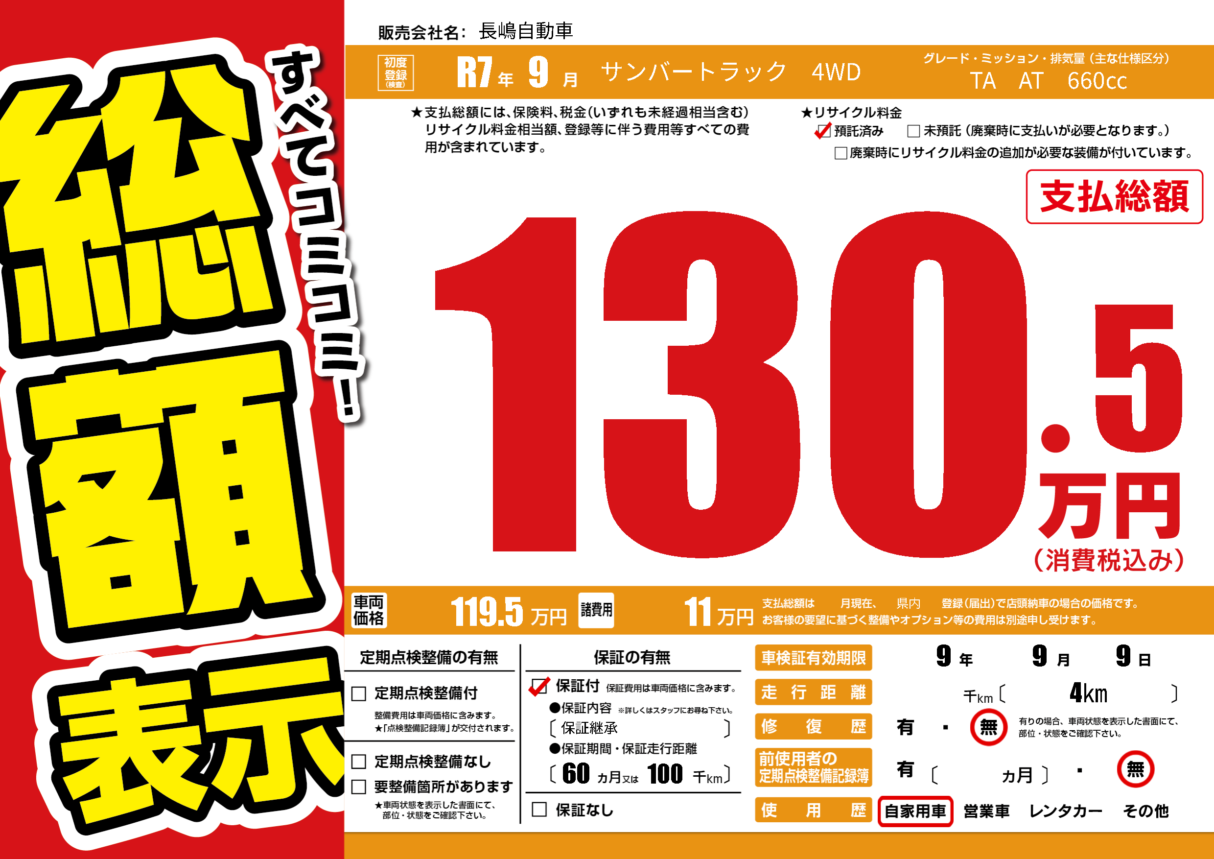 | 車検制限 | 9年 9月 9日 | ||