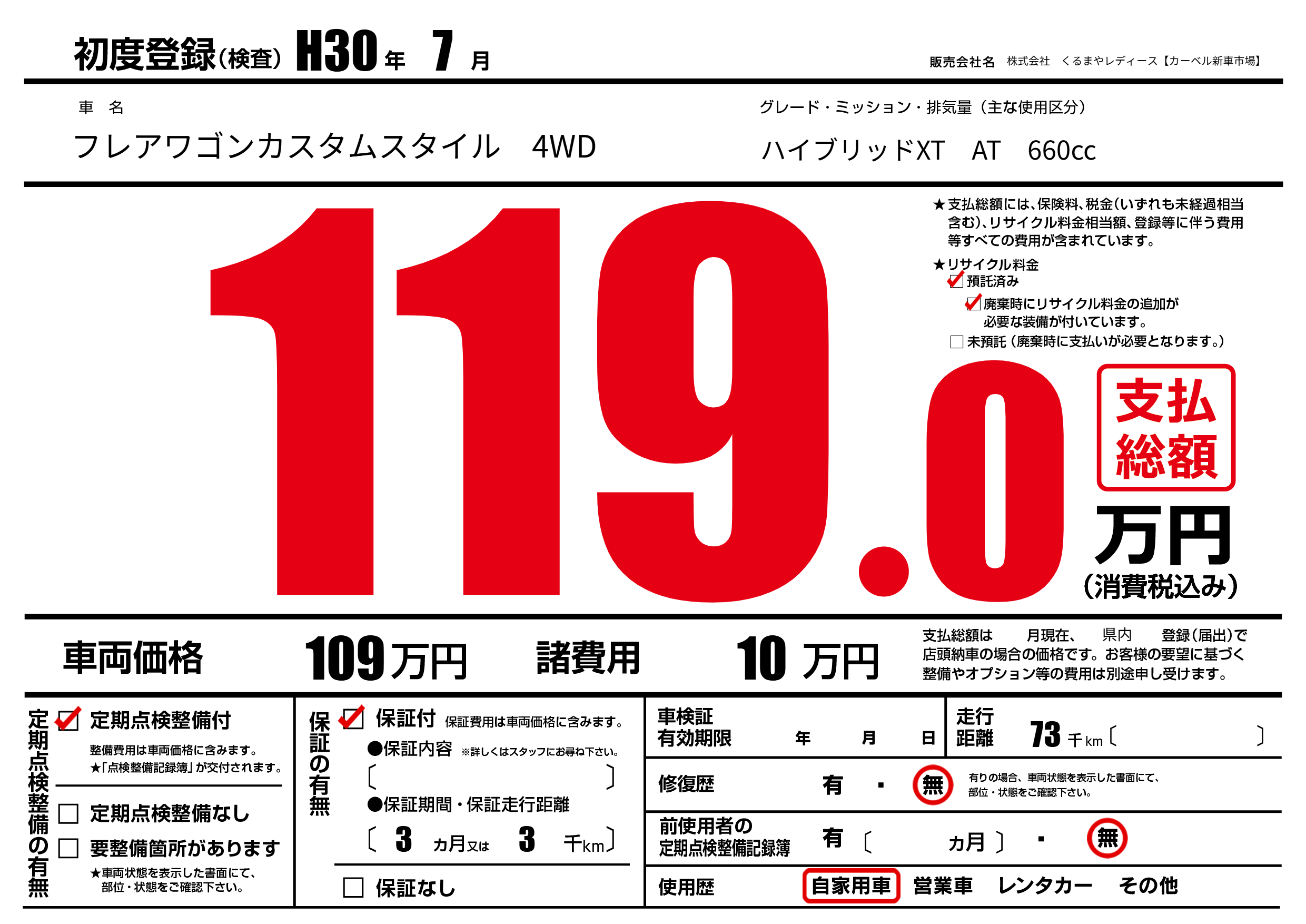 株式会社 くるまやレディース【カーベル新車市場】の展示車