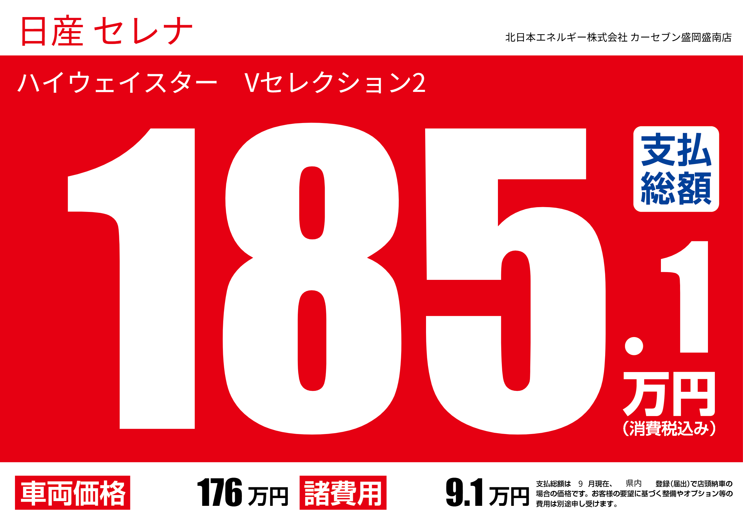 | 車名 | 日産 セレナ | グレード ミッション 排気量 |