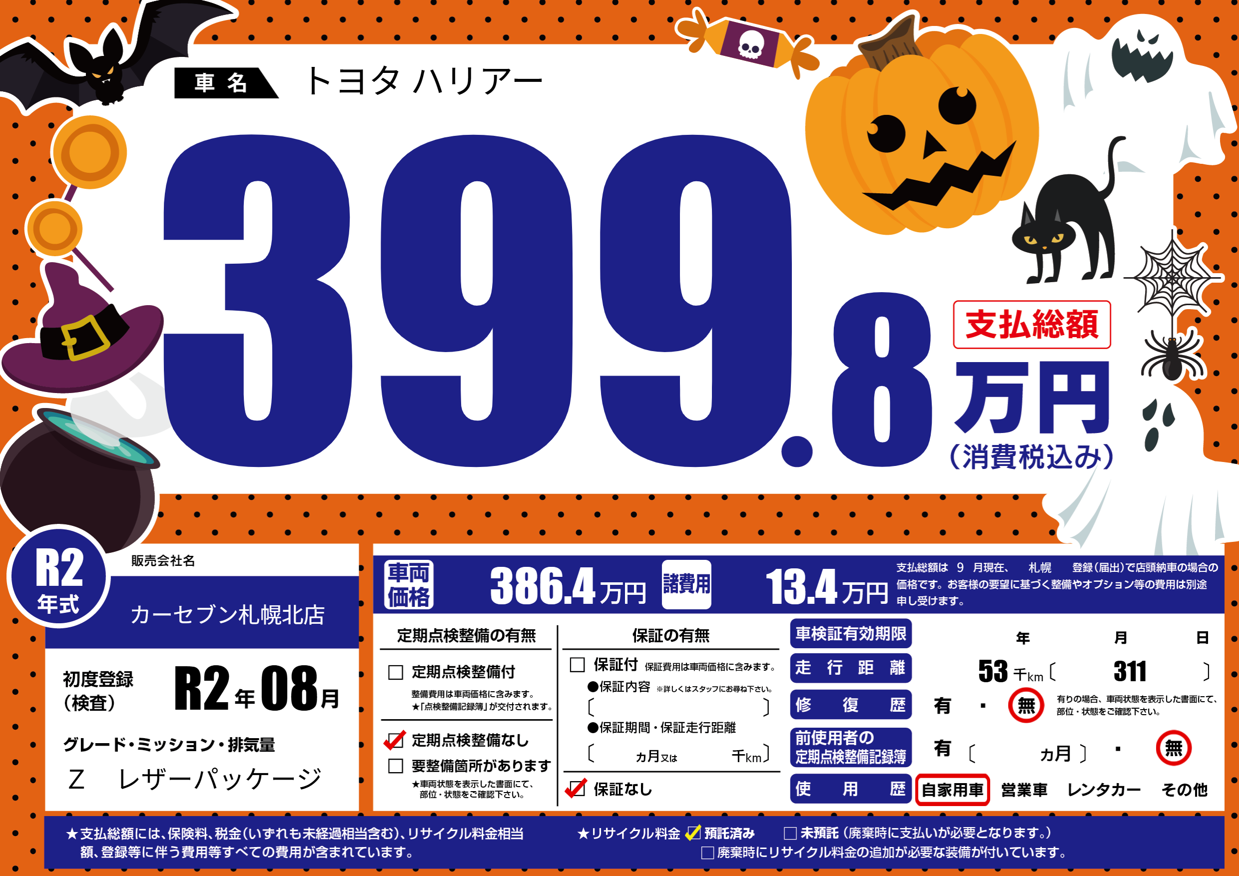 | 走行キロ | 5.3万km | 初年度登録 | R2年08月 |