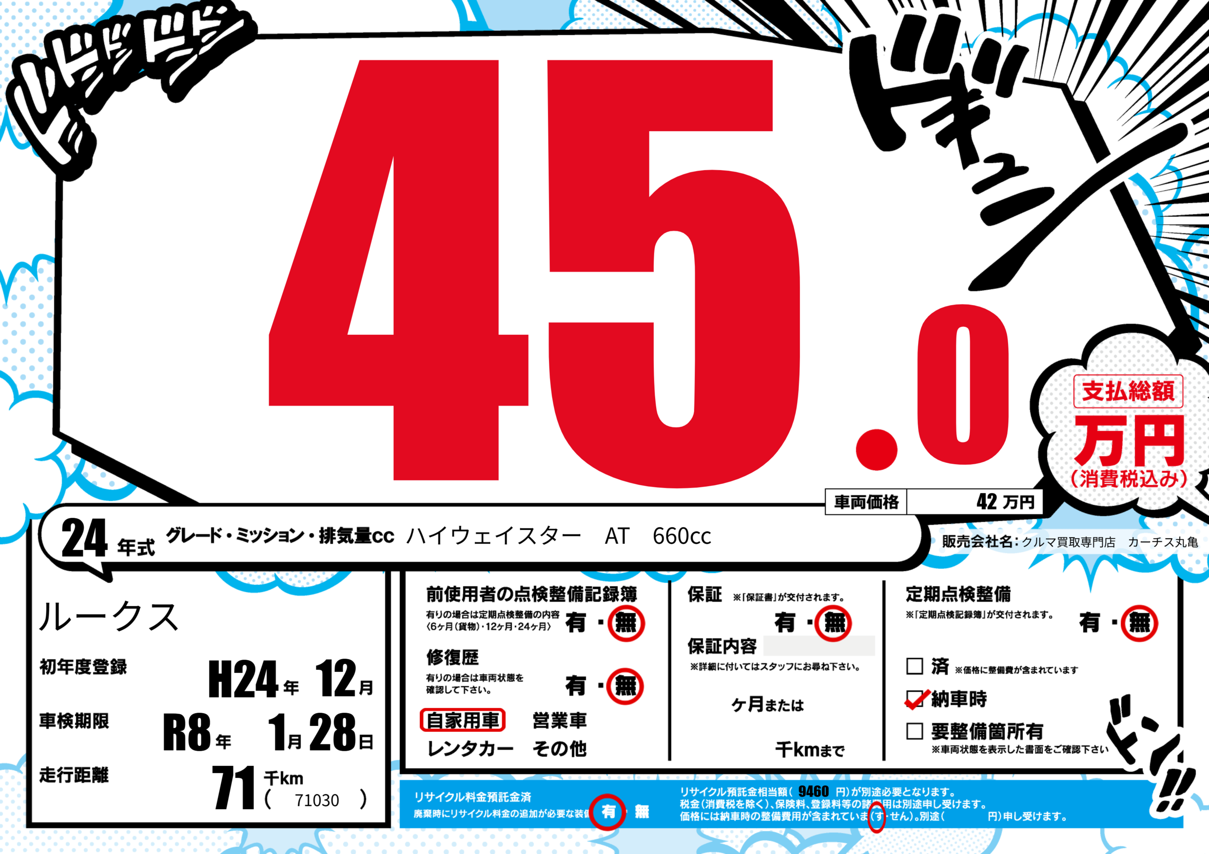 | 走行キロ | 7.1万km | 初年度登録 | H24年12月 |