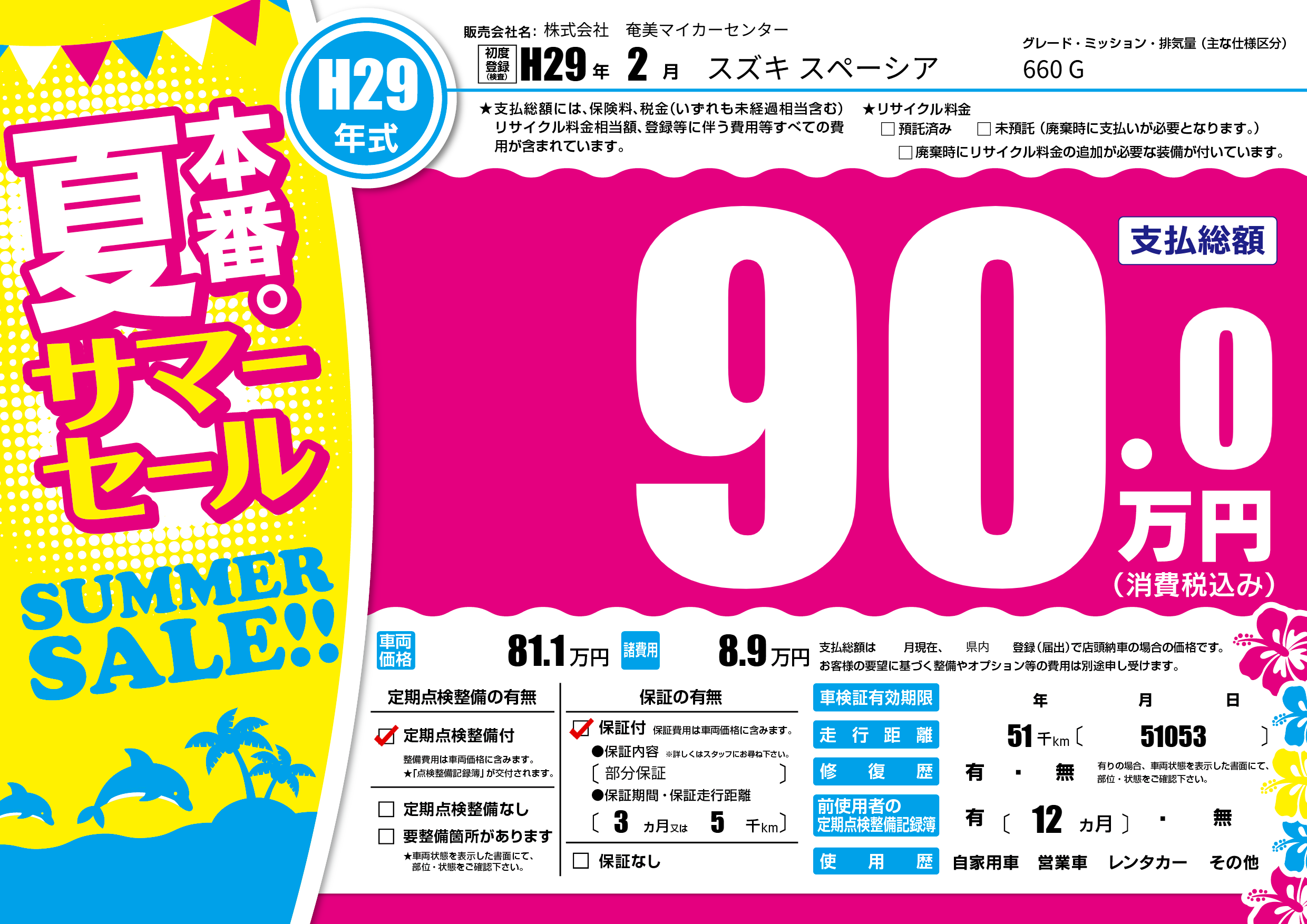 | 走行キロ | 5.1万km | 初年度登録 | H29年2月 |