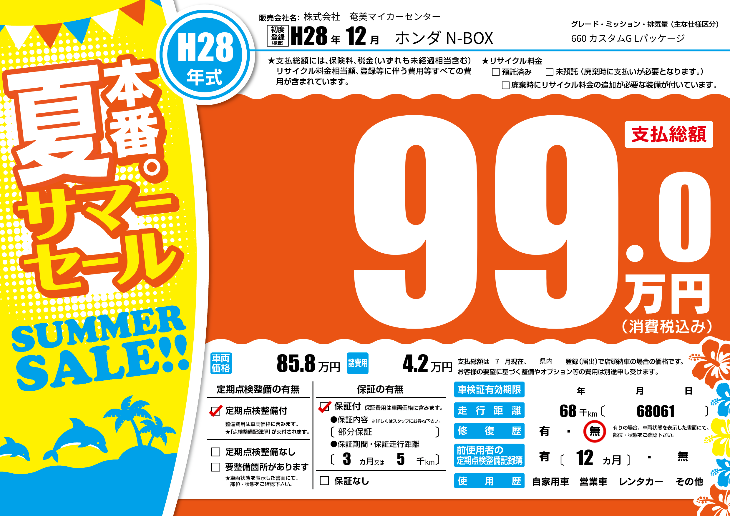 | 走行キロ | 6.8万km | 初年度登録 | H28年12月 |