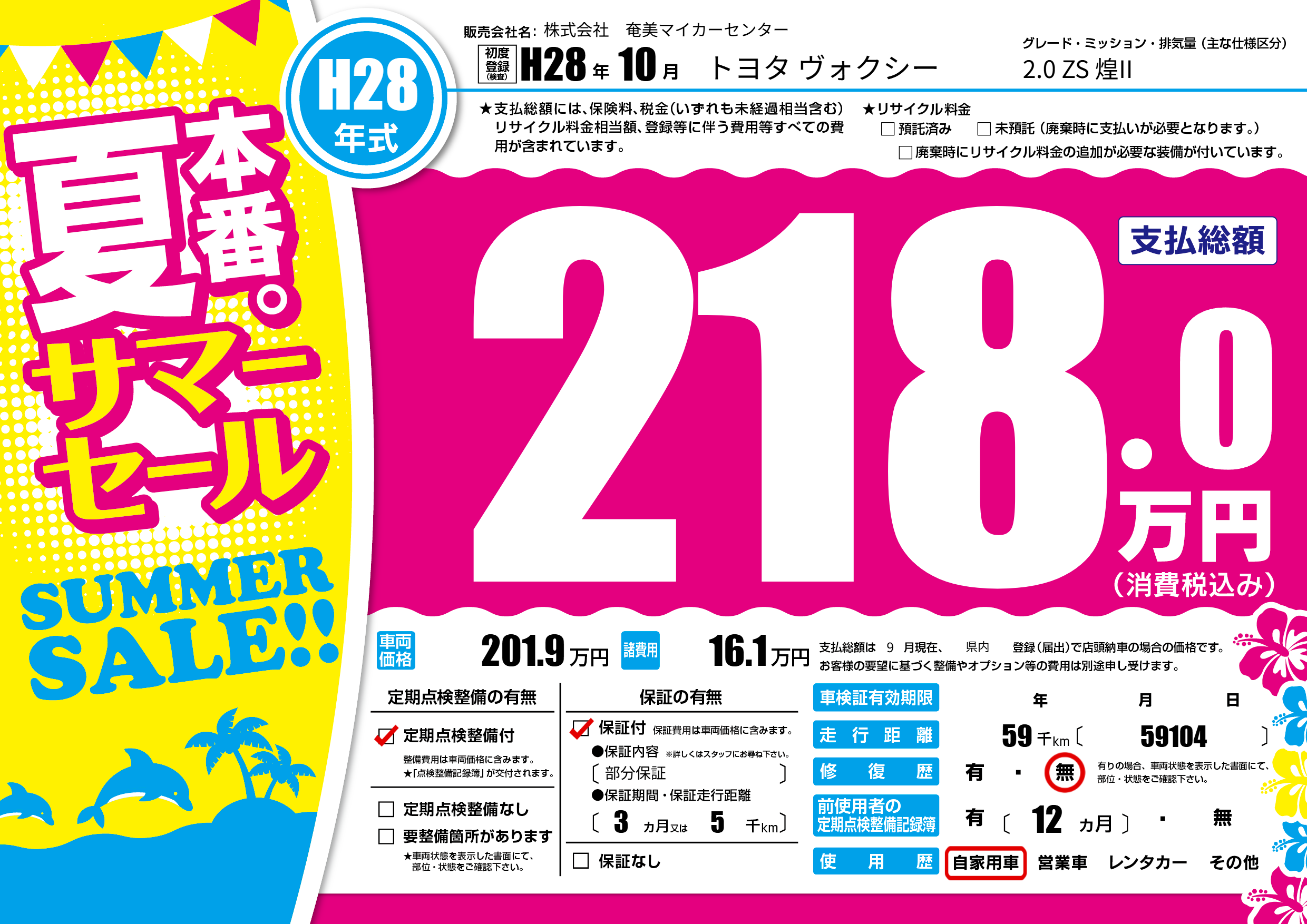 | 走行キロ | 5.9万km | 初年度登録 | H28年10月 |