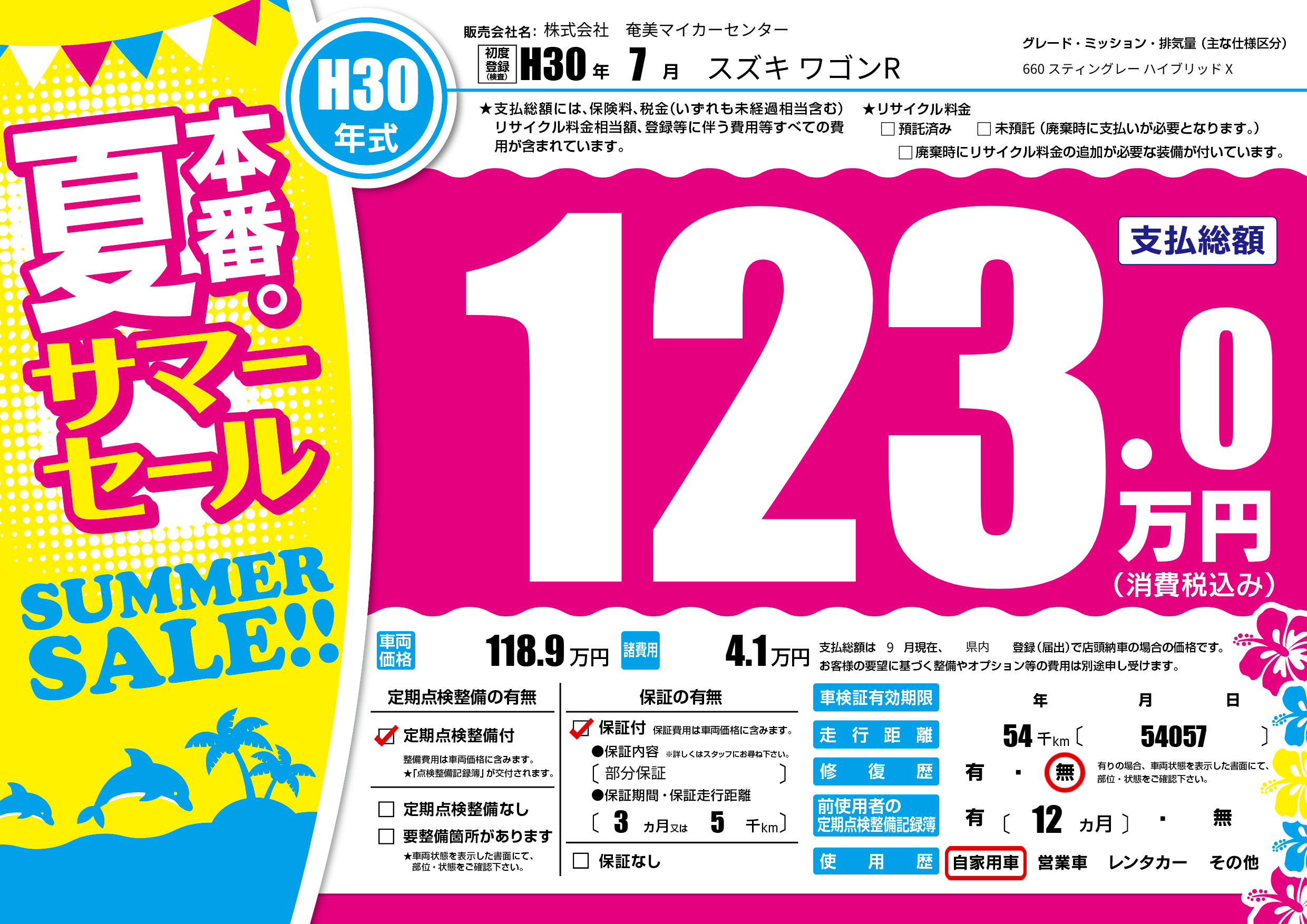 | 初年度登録 | H30年7月 | ||