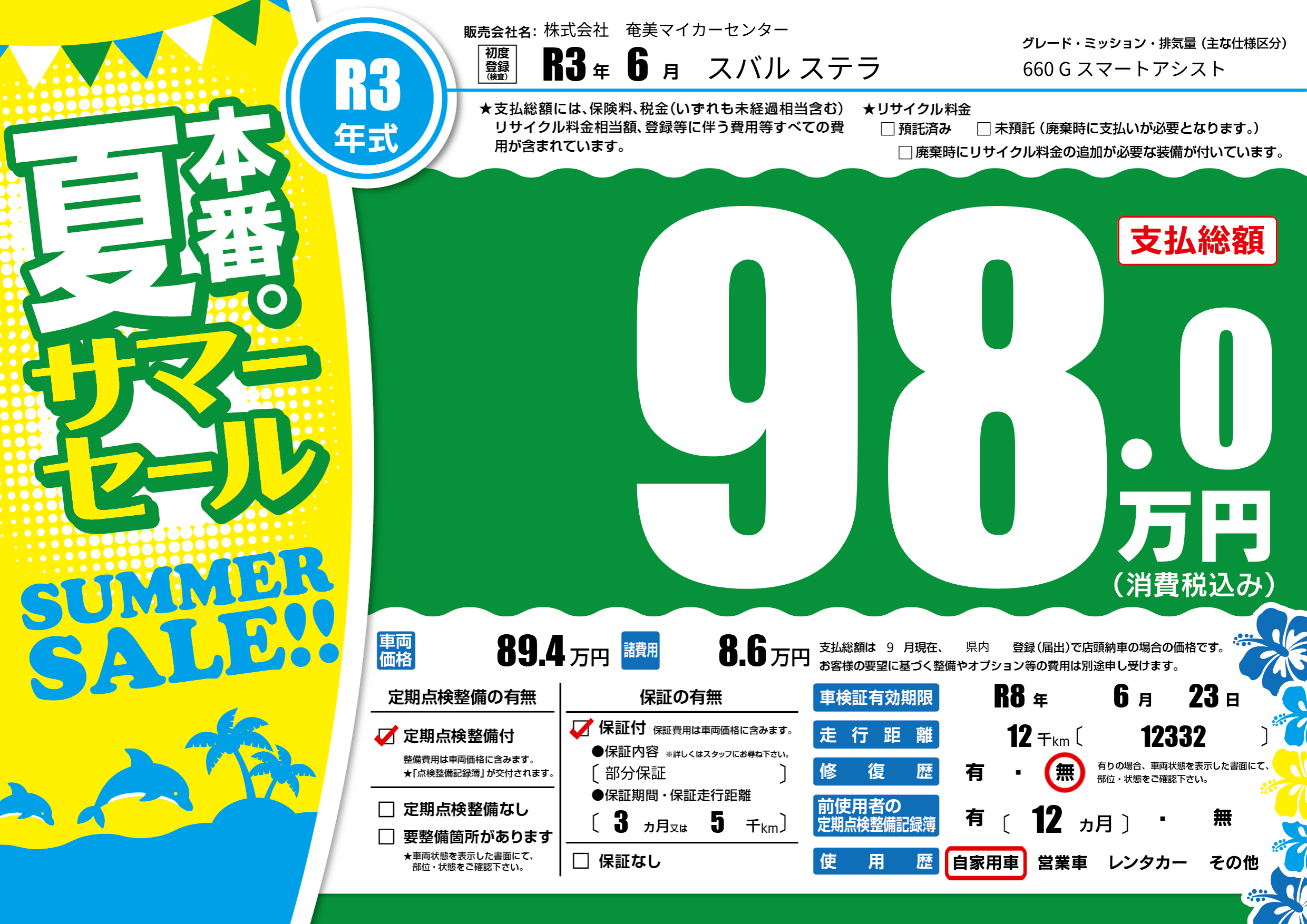 | 走行キロ | 1.2万km | 初年度登録 | R3年6月 |