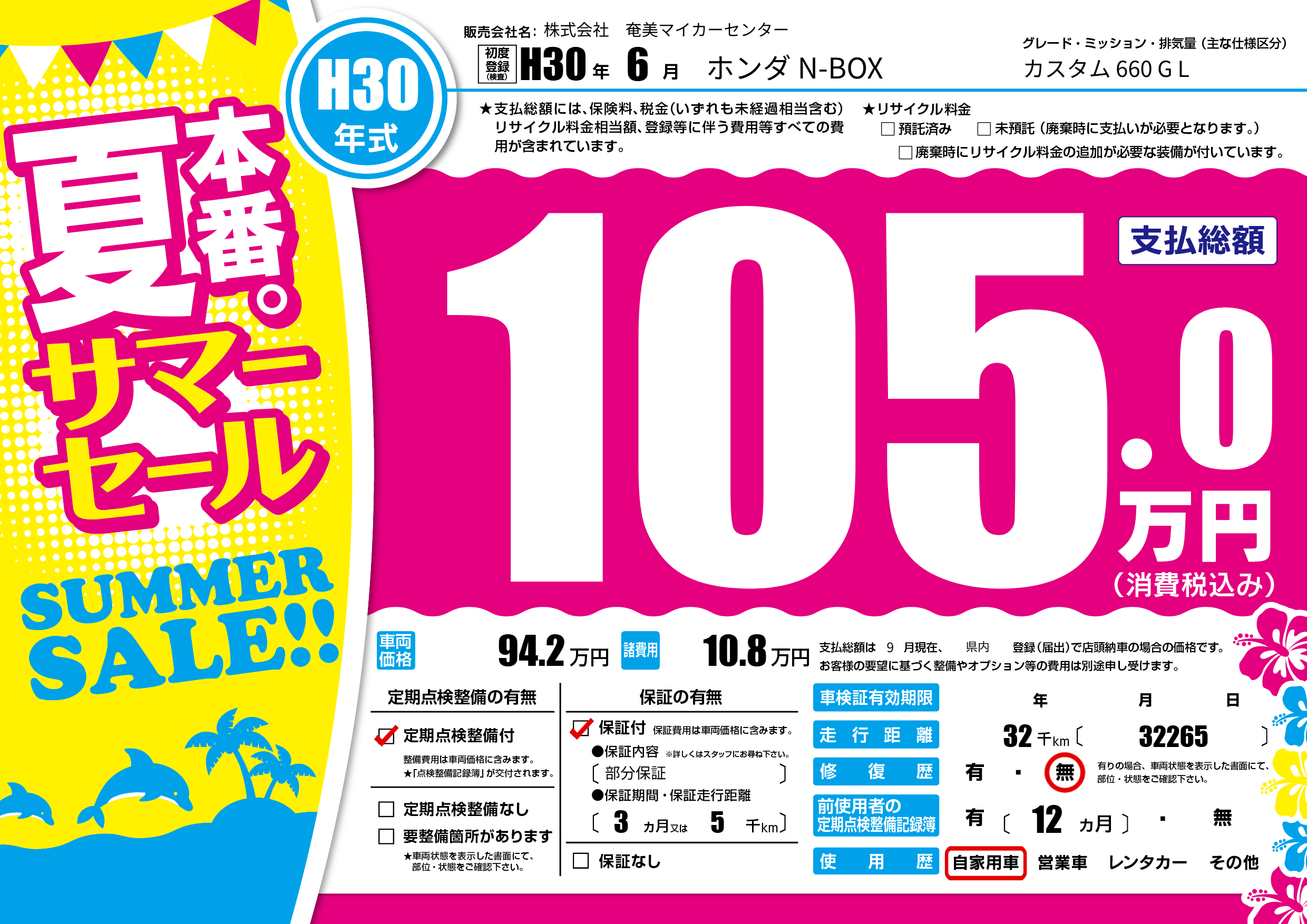 | 初年度登録 | H30年6月 | ||