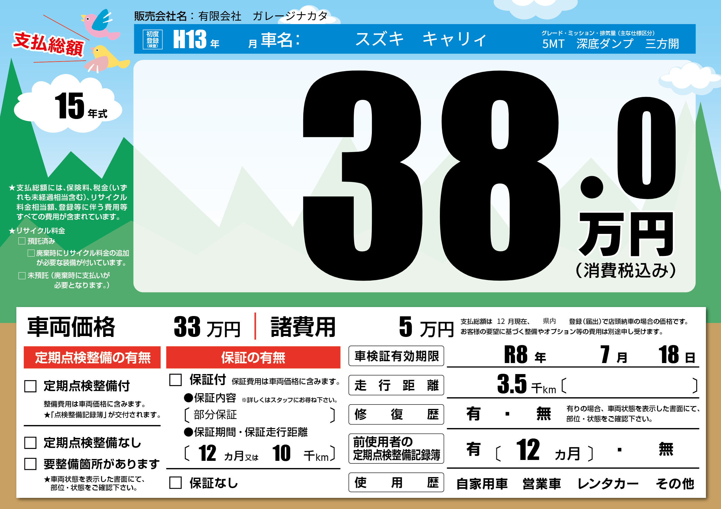 | 車名 | スズキ キャリィ | グレード ミッション 排気量 |