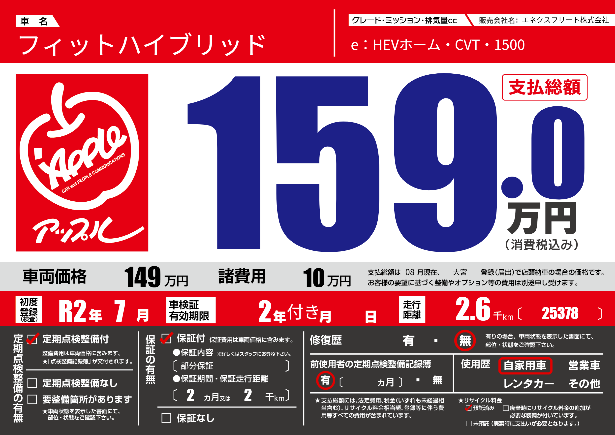 | 走行キロ | 0.2万km | 初年度登録 | R2年7月 |