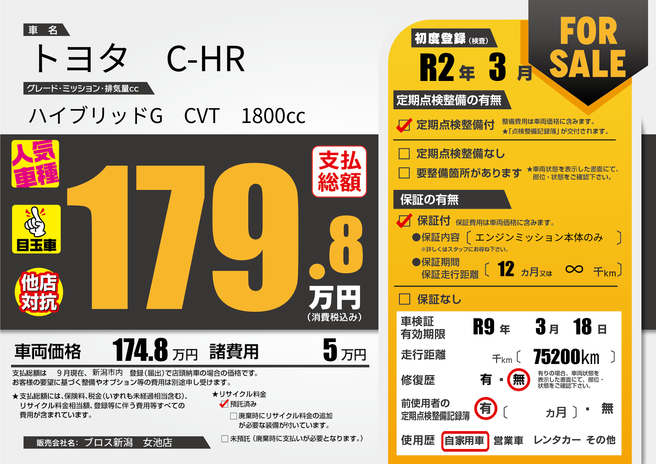 なし | 車検制限 | R9年3月18月 |