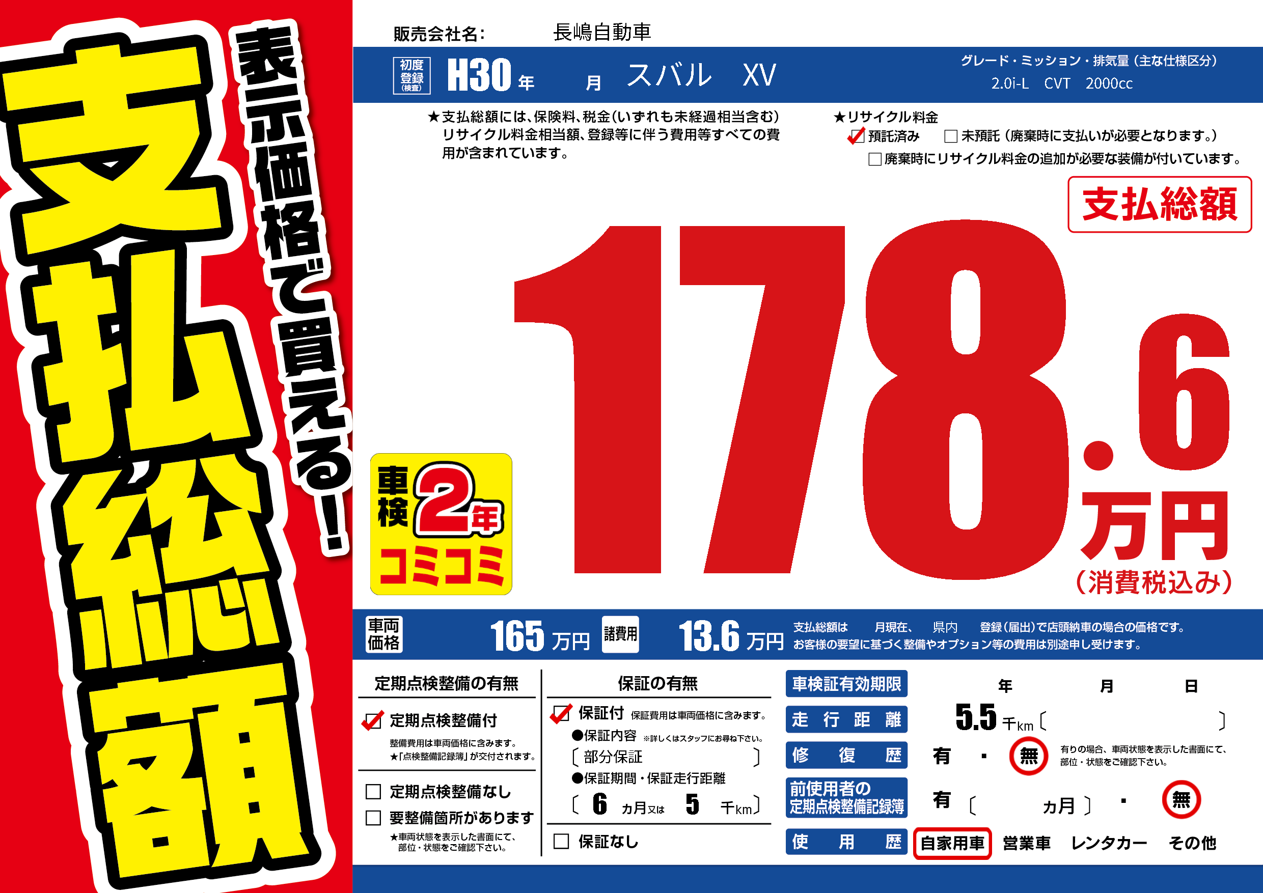保証付き 保証内容(部分保証) 6ヶ月または(5)千kmまで |