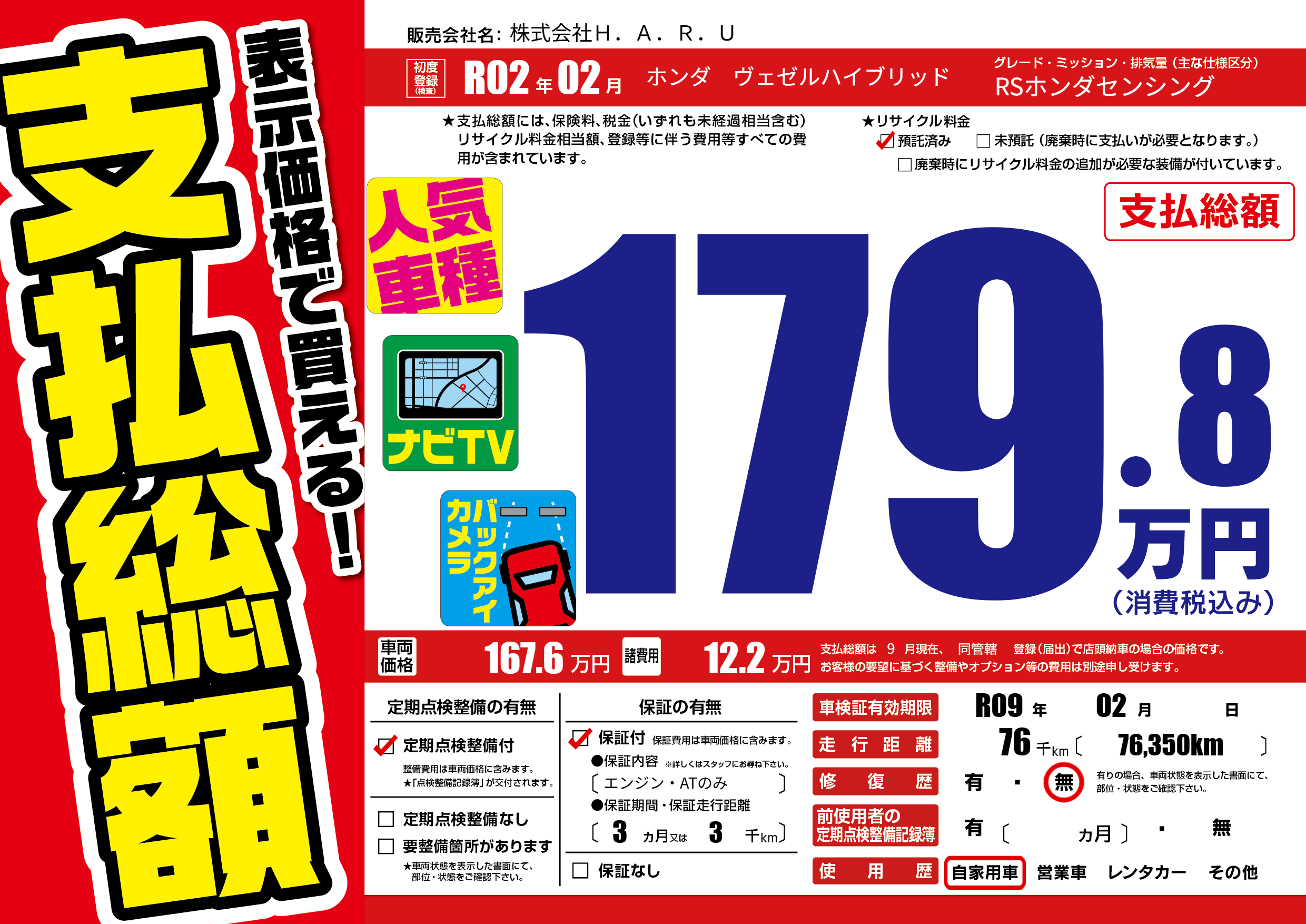 なし | 車検制限 | R09年02月---月 |
