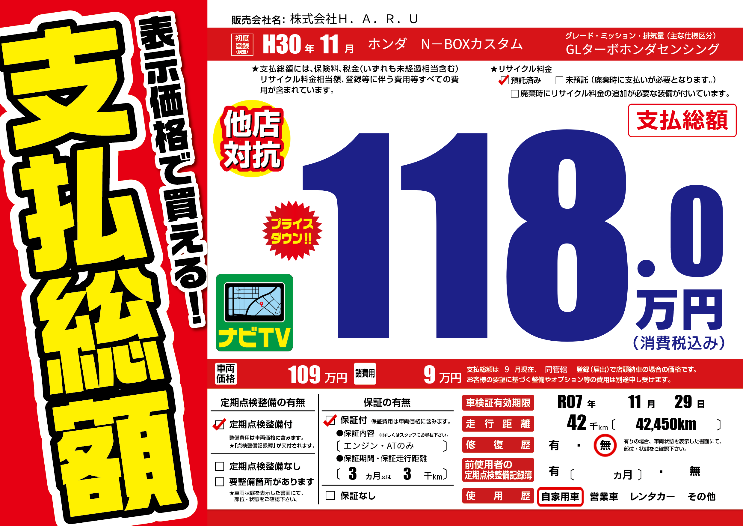 | 車検制限 | R07年 11月 29日 | ||