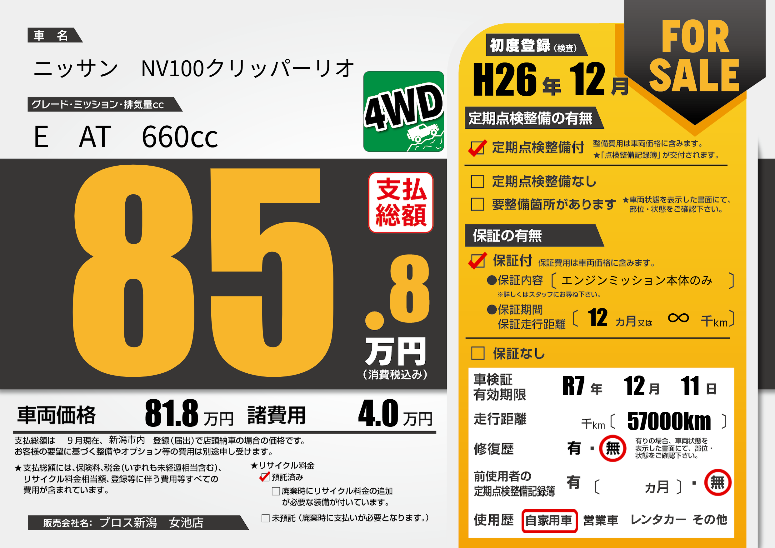 保証内容(エンジンミッション本体のみ) 12ヶ月または∞千km