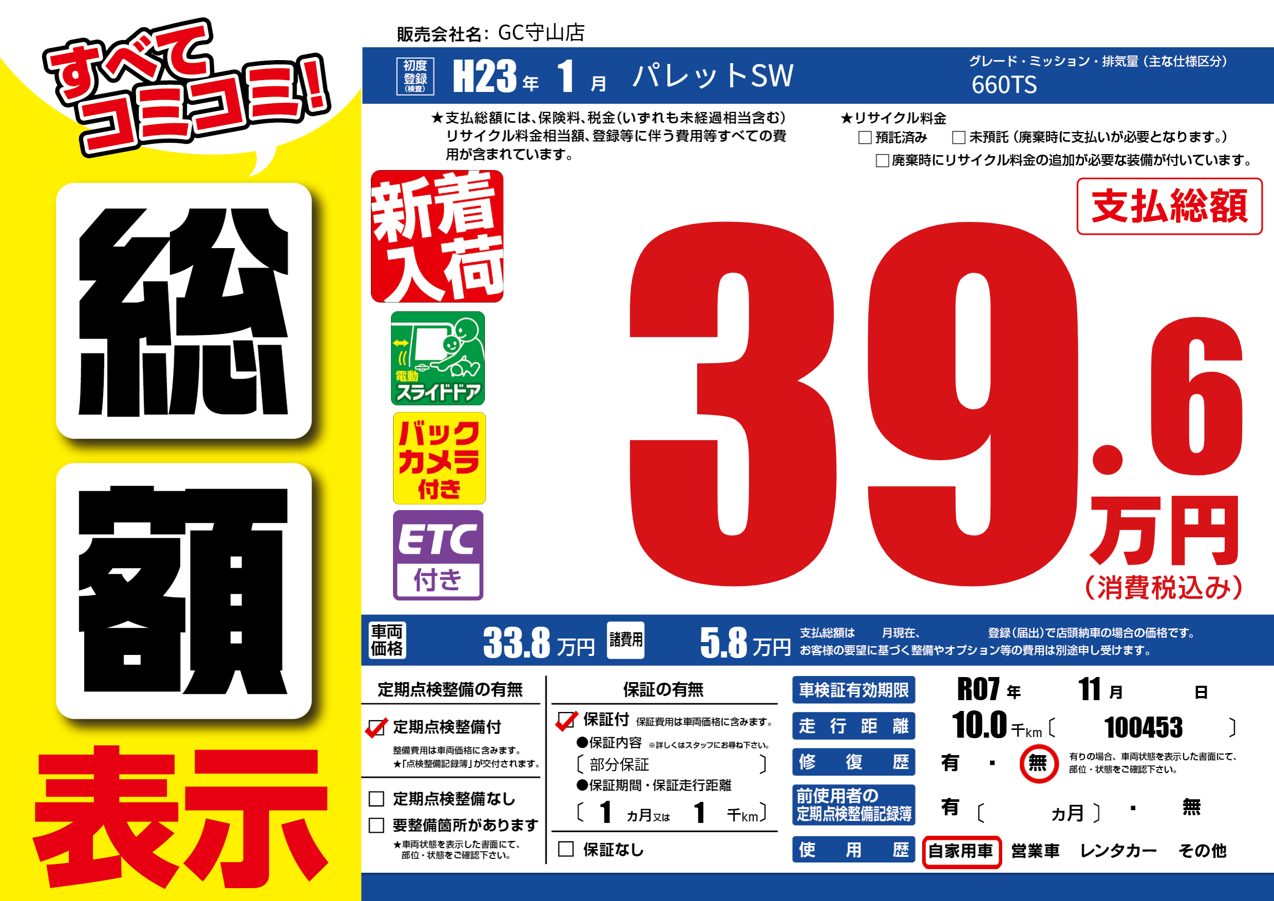 | 車名 | パレットSW | グレード ミッション 排気量 |