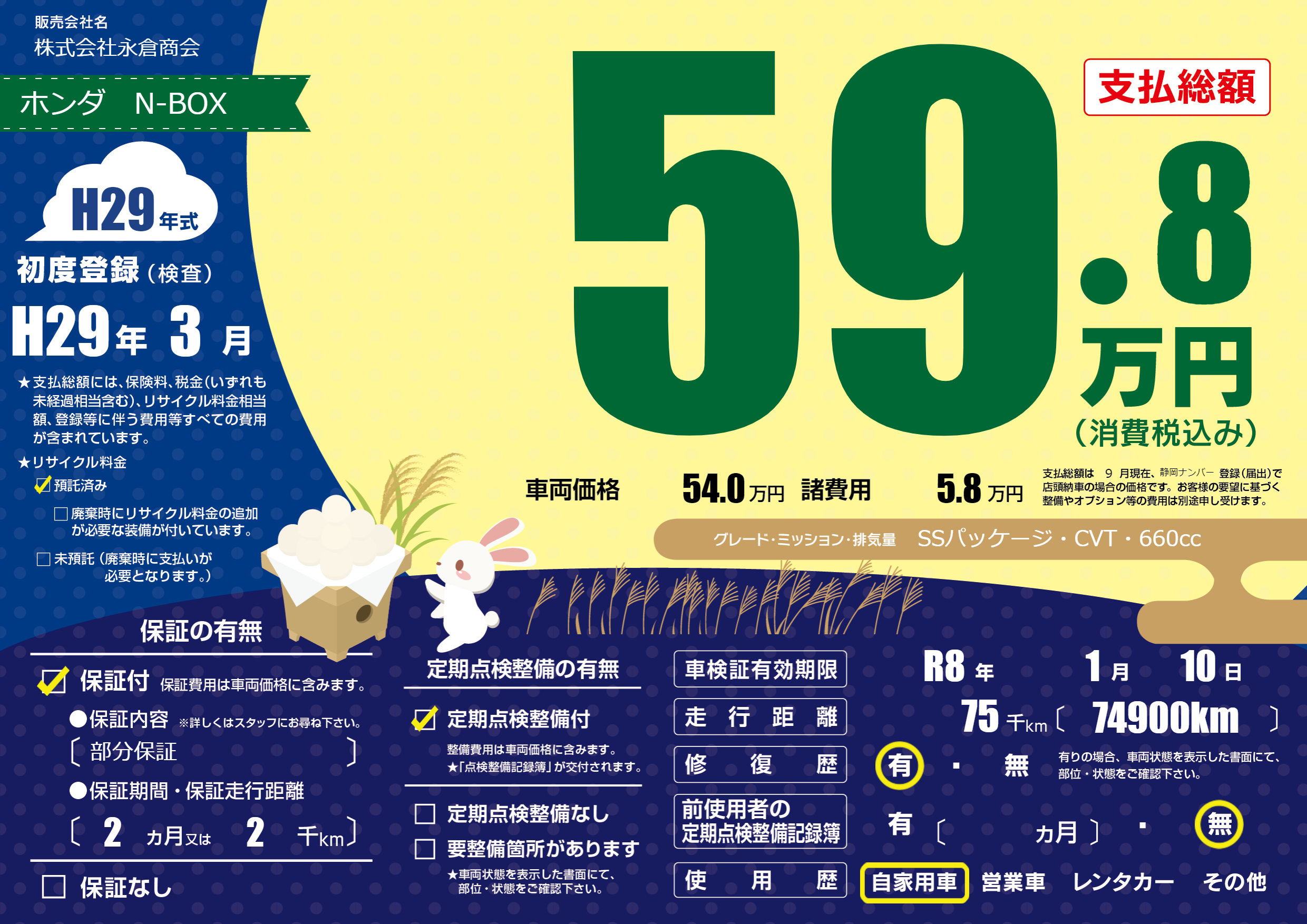 | 車検制限 | R8年 1月 10日 | ||